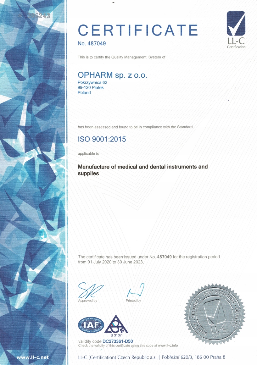 Медицинский продукт соответствует стандарту EN:14683:2019, зарегистрировано в Регистрационном бюро лекарственных средств и биоцидов.