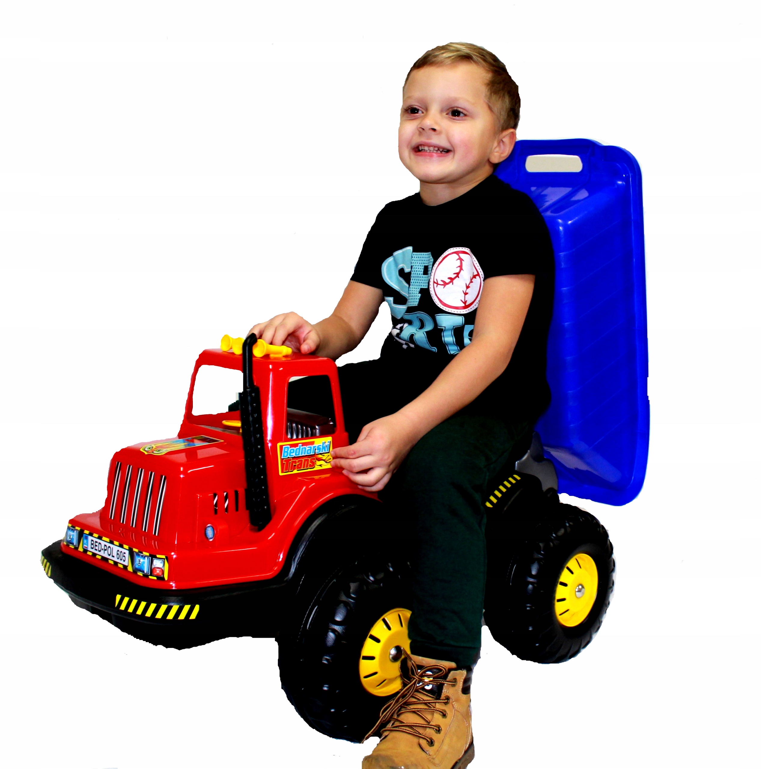 Габариты самосвала позволяют ребенку свободно им управлять, ведь даже малыши, которые учатся ходить, опираясь на ящик, толкают его вперед.