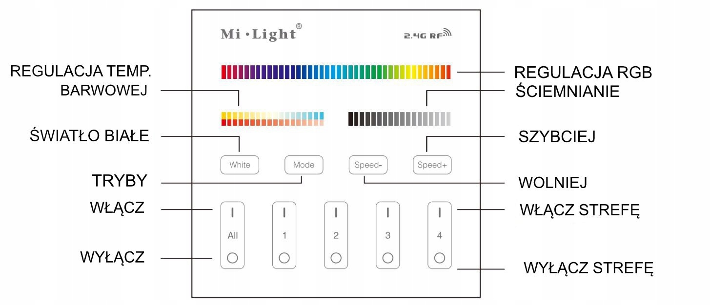 Серия Malight - это решение для людей, которые ценят современные решения, минимализм, а также простоту сборки. Замените много пилотов в вашей квартире на одну контроль 4 зоны. Кухня, спальня, коридор, ванная комната или, может быть, подвесной потолок, мебель и телевизионное освещение? Конфигурация бесплатна, ограничена только воображением. Диапазон составляет почти 30 м !