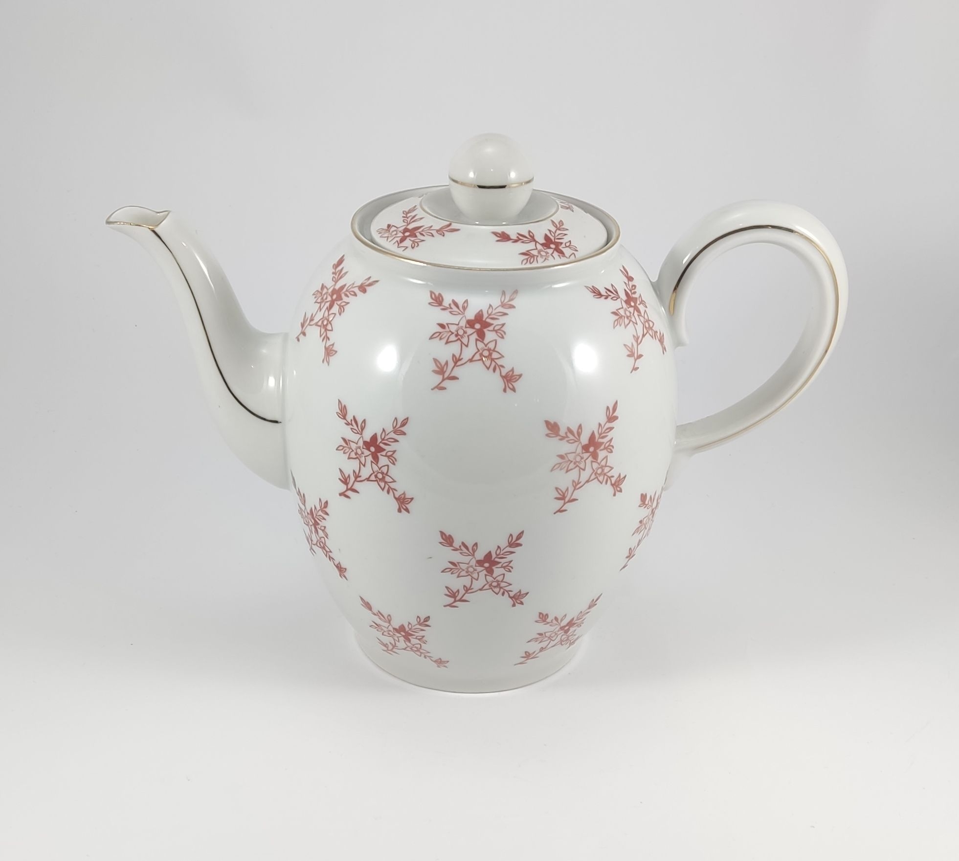 У нас есть кувшин с фарфоровым чаем для продажи. Предмет из немецкого производства Volkstedt Rudolstadt Beyer и Bock. Подпись, используемая в 1931-1990 годах.