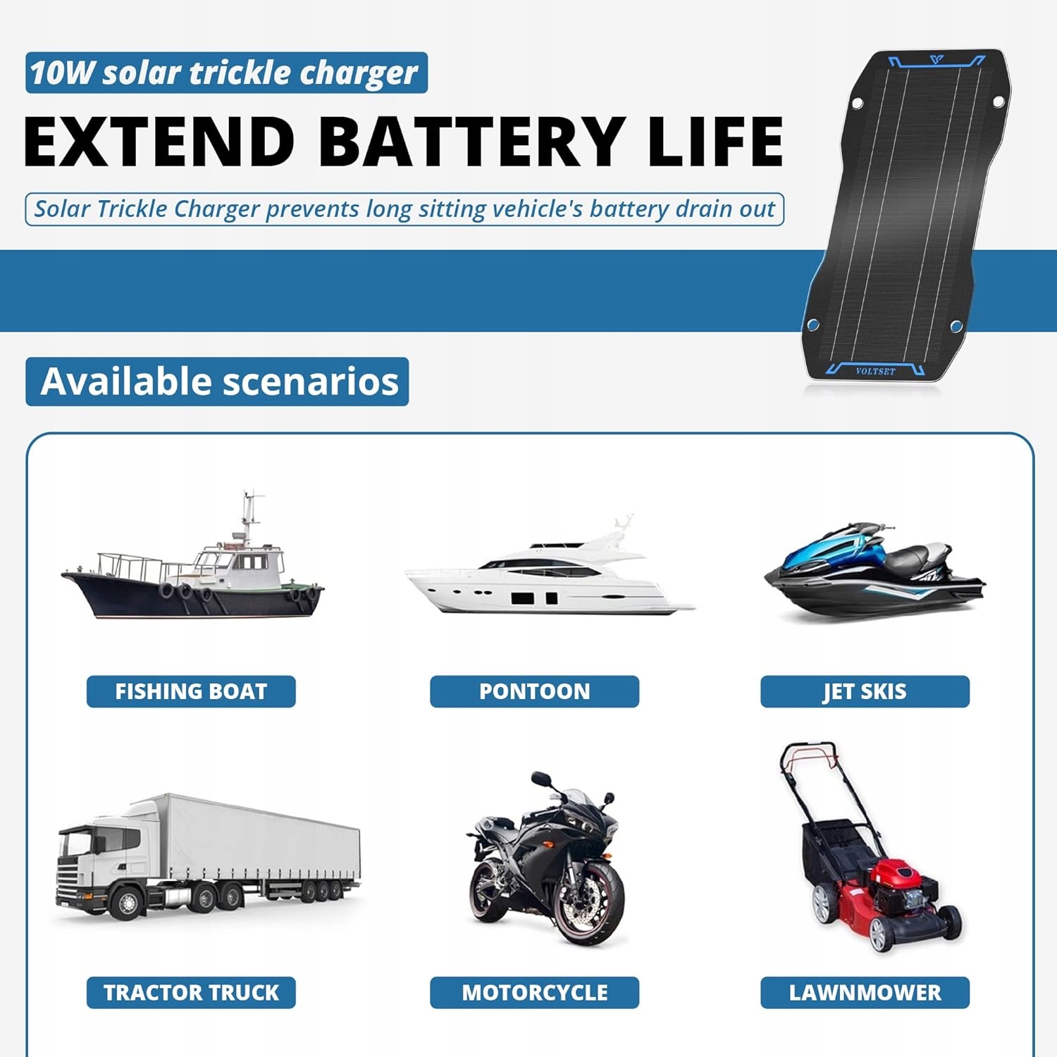 voltset 12 В 10 Вт Солнечное зарядное устройство, поддерживающее автомобильную батарею, гибкий набор зарядного устройства для солнечных батарей для батареи 12 В, лодки, мотоциклов, грузовиков с более легкими, крокодиловыми зажимами