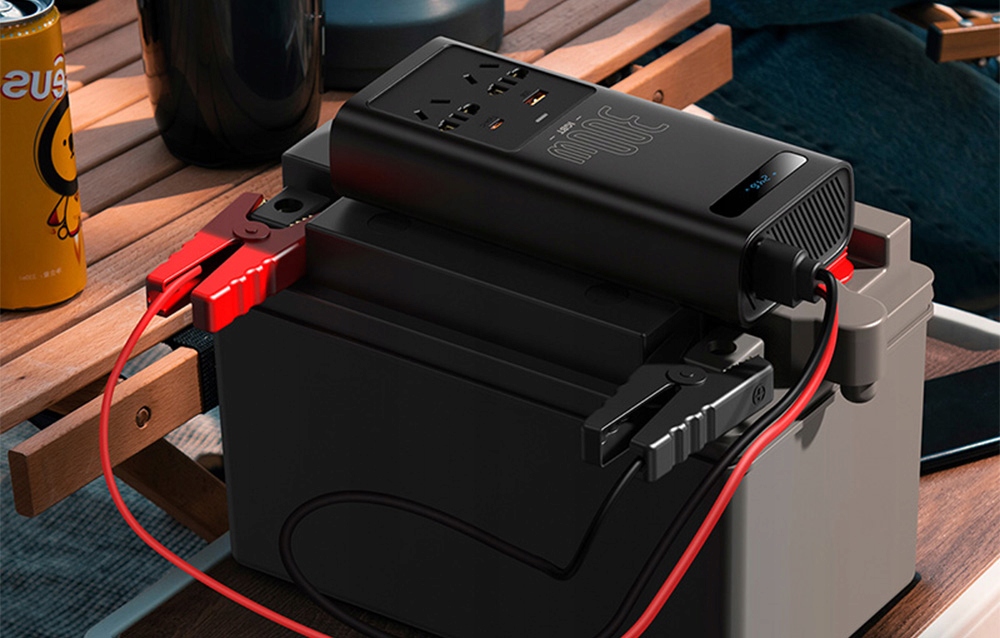 Автомобильный инвертор Baseus будет полезен в путешествии, на работе, на мероприятии на природе или в кемпинге. Вы можете подключить его к гнезду прикуривателя в автомобиле или к аккумулятору — это позволяют специальные клеммы. Он обеспечивает чистое синусоидальное напряжение, а его максимальная выходная мощность составляет 300 Вт. / б>р>