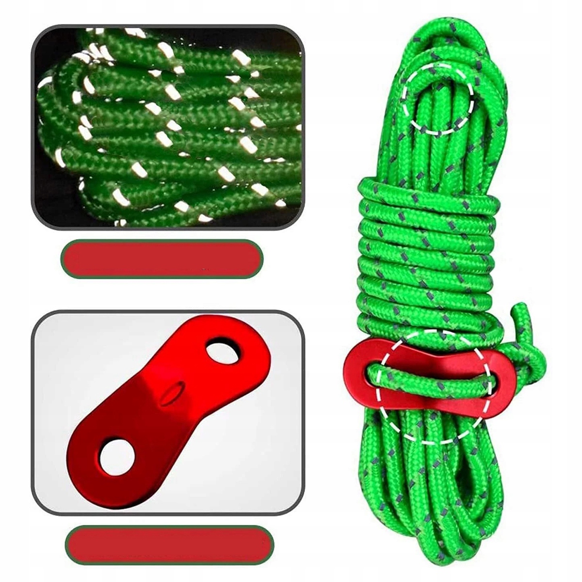 - [размер] Каждая веревка длиной 4 метра, а диаметр 4 мм. Набор включает в себя в общей сложности 10 линий палатки.