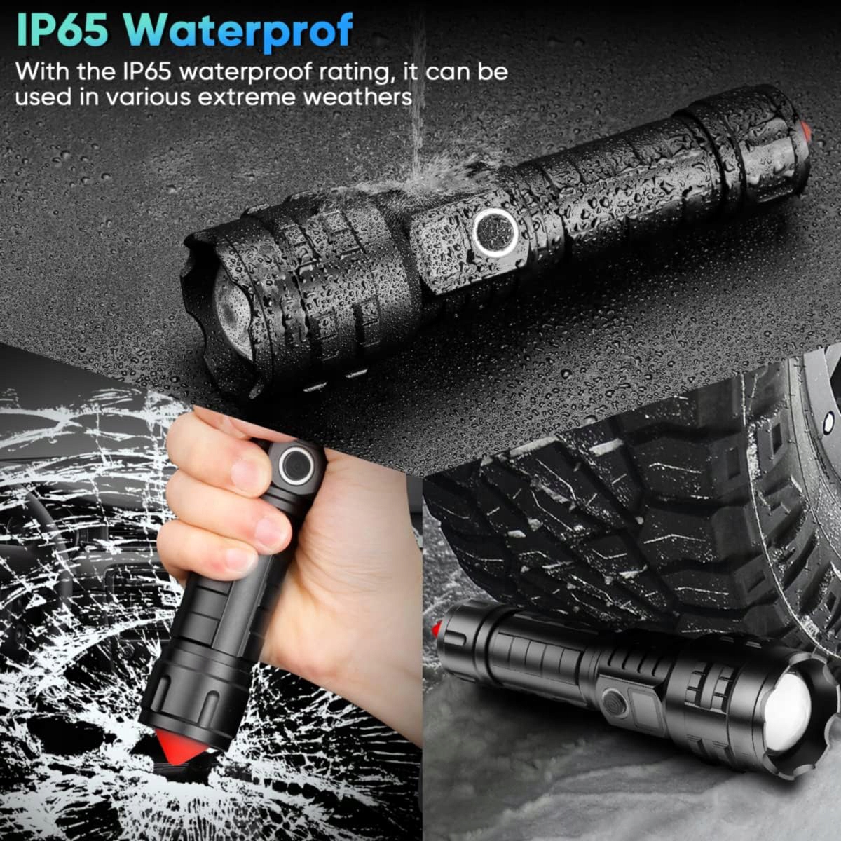 Благодаря водонепроницаемости IPX6 вам не придется беспокоиться о том, что фонарь разбрызгается или сработает даже во время сильного дождя.