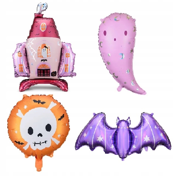 ШАРЫ ДЛЯ ХЭЛЛОУИНА, ЛЕТУЯ ЧЕРЕП, ПРИЗРАК, ДОМ С ПРИВИДЕНИЯМИ, ФОЛЬГА, 4 шт.