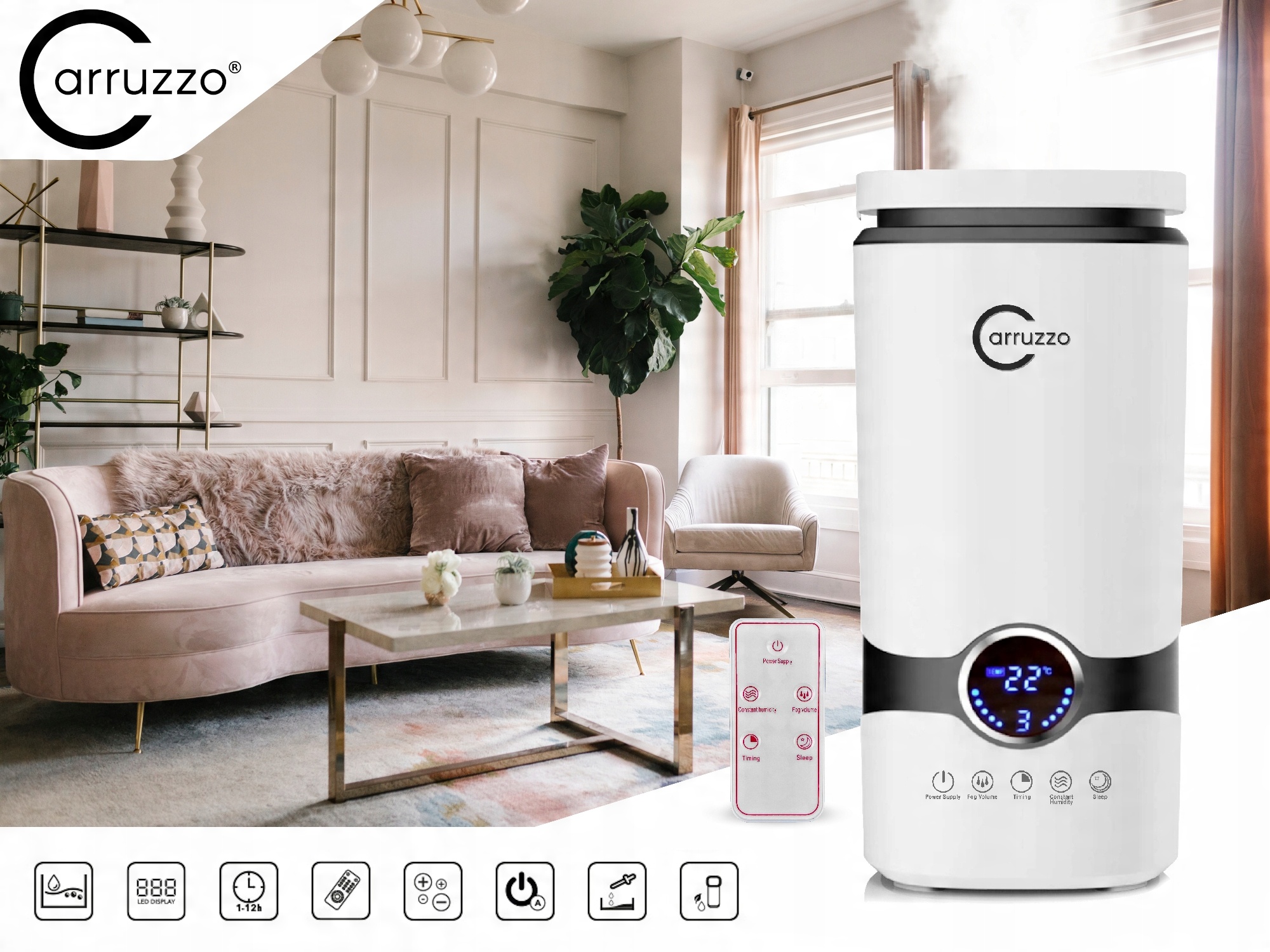 ► В течение периода нагрева, когда работают радиаторы и радиаторы, мы особенно подвержены слишком сухому воздуху. Carruzzo Exclusive Line Увлажнитель позаботится о правильной гидратации и защищает вас и ваших близких от других, таких болезней, как: