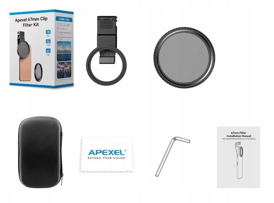 ✏ В наборе есть специальный клип, который позволяет легко и устойчиво закрепить фильтра на телефоне.