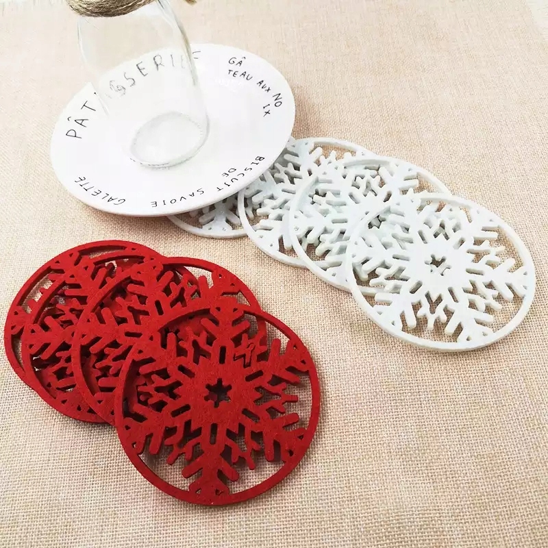 Подушечка для кружки из качественного фетра с изображением красивой снежинки. Это идеальное украшение стола и письменного стола.
