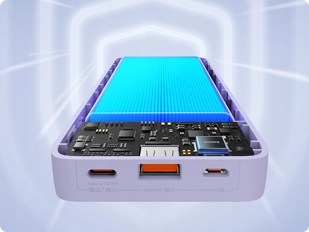 Powerbank Baseus Airpow обеспечивает защиту от перегрева, перегрузки и всплесков, так что вы можете использовать его без страха. Индикатор светодиода сообщает о текущем уровне заряда, который позволяет лучше управлять энергией.