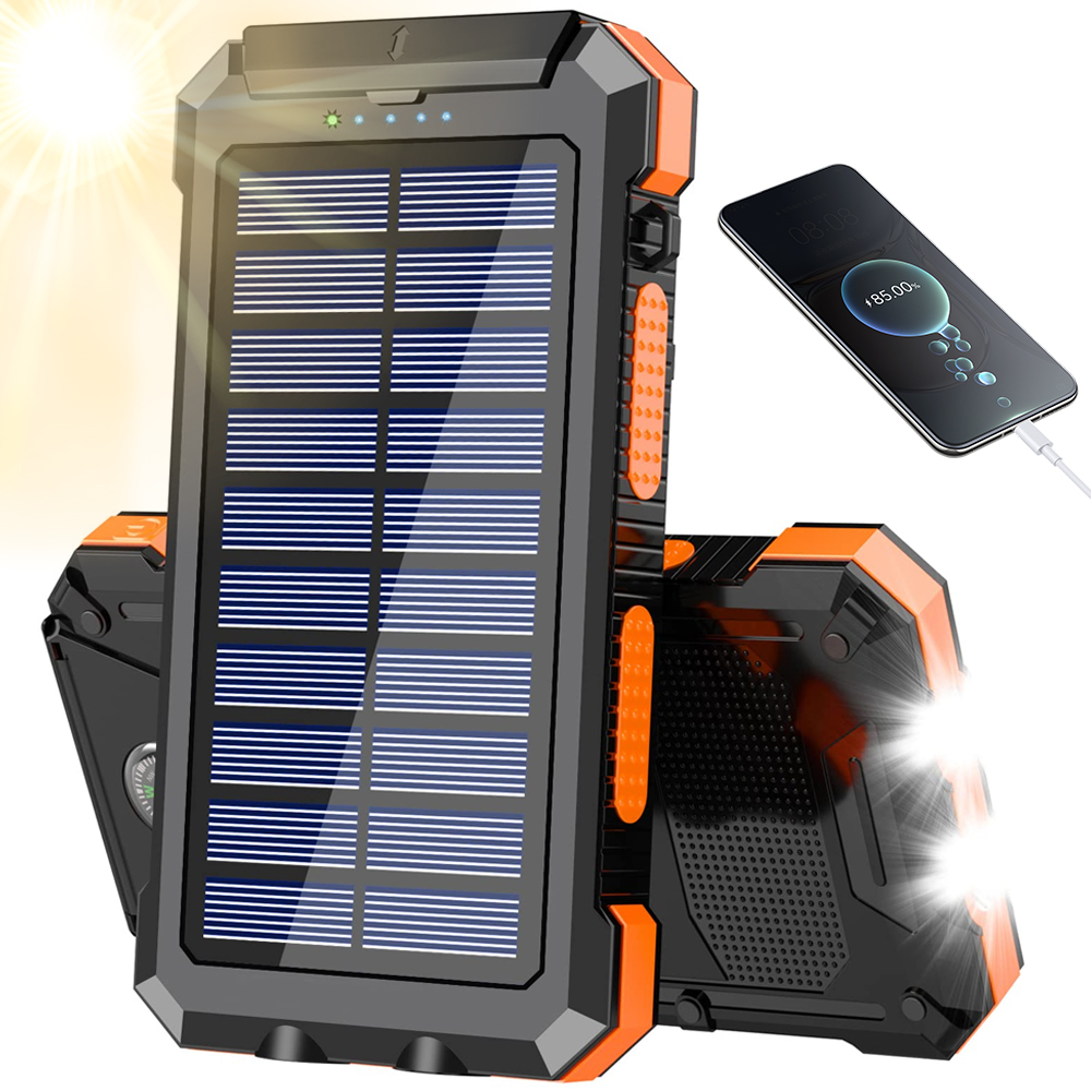 - ✔ Встроенный фонарик и Compass - этот солнечный банк с универсальным банком мощности также оснащен двумя светодиодными и компасными вспышками. Фонарик имеет три режима: сплошной свет, мигающий свет и будильник соуса. Благодаря более 50 часов работы автономной работы, оно может удовлетворить ваши чрезвычайные потребности и обеспечить безопасное руководство во время ваших приключений на свежем воздухе.