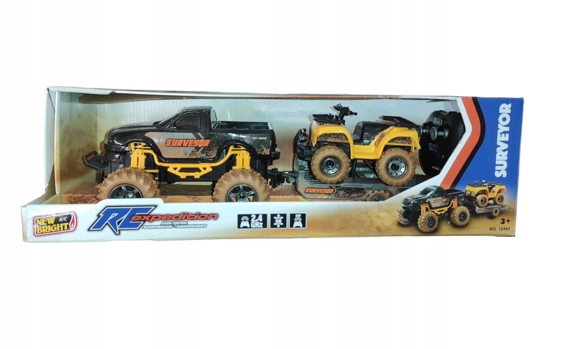 Мягкие, прорезиненные колеса автомобиля гарантируют отличное сцепление автомобиля с различными типами оснований. Автомобиль оснащен прицепом, позволяющим перевозить различных животных, грузы или квадроцикл, входящий в комплект.