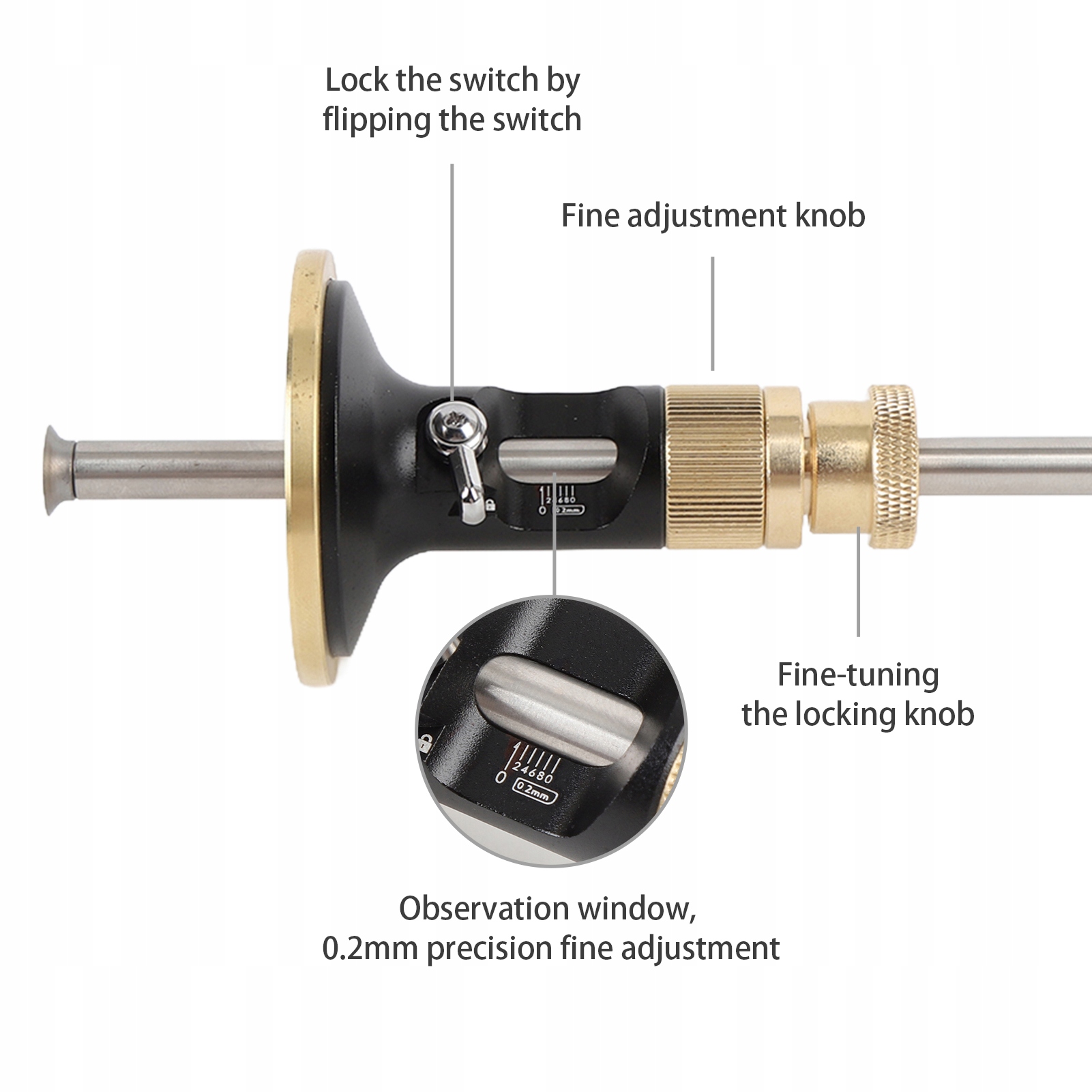 3. Качественный материал: шлифовальная мешка из нержавеющей стали с гравированной прозрачной шкалой, предназначенной для легкого расположения. Высококачественная латунная поверхность скользит вдоль края древесины до равной маркировки.