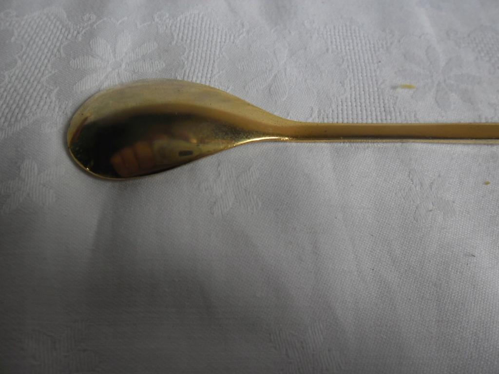 КРАСИВАЯ ПОЗОЛОЧЕННАЯ КОКТЕЙЛЬНАЯ ЛОЖКА С НАКОНЕЧНИКОМ МАХАГОНИ.ПОЗОЛОЧЕННАЯ.СОСТОЯНИЕ ОЧЕНЬ ХОРОШЕЕ. НЕБОЛЬШИЕ ЦАРАПИНЫ - ЭФФЕКТ НОРМАЛЬНОГО ИСПОЛЬЗОВАНИЯ. ДЕТАЛИ ВИДНЫ НА ФОТО.