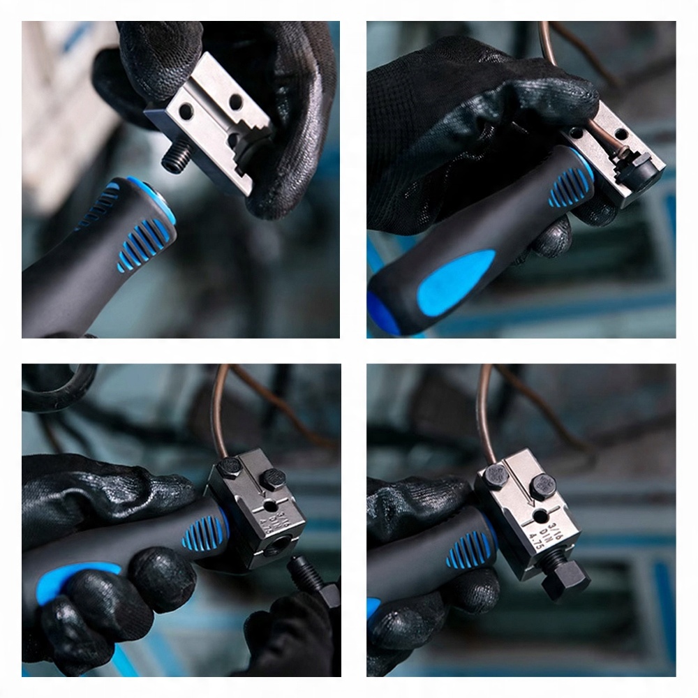 - Сделайте задачу за половину времени: этот компактный и портативный двойной инструмент для двойного расщепления позволяет легко создавать высококачественные двойные 45 -градусные вспышки до 3/16 дюйма, таких как тормозная линия.