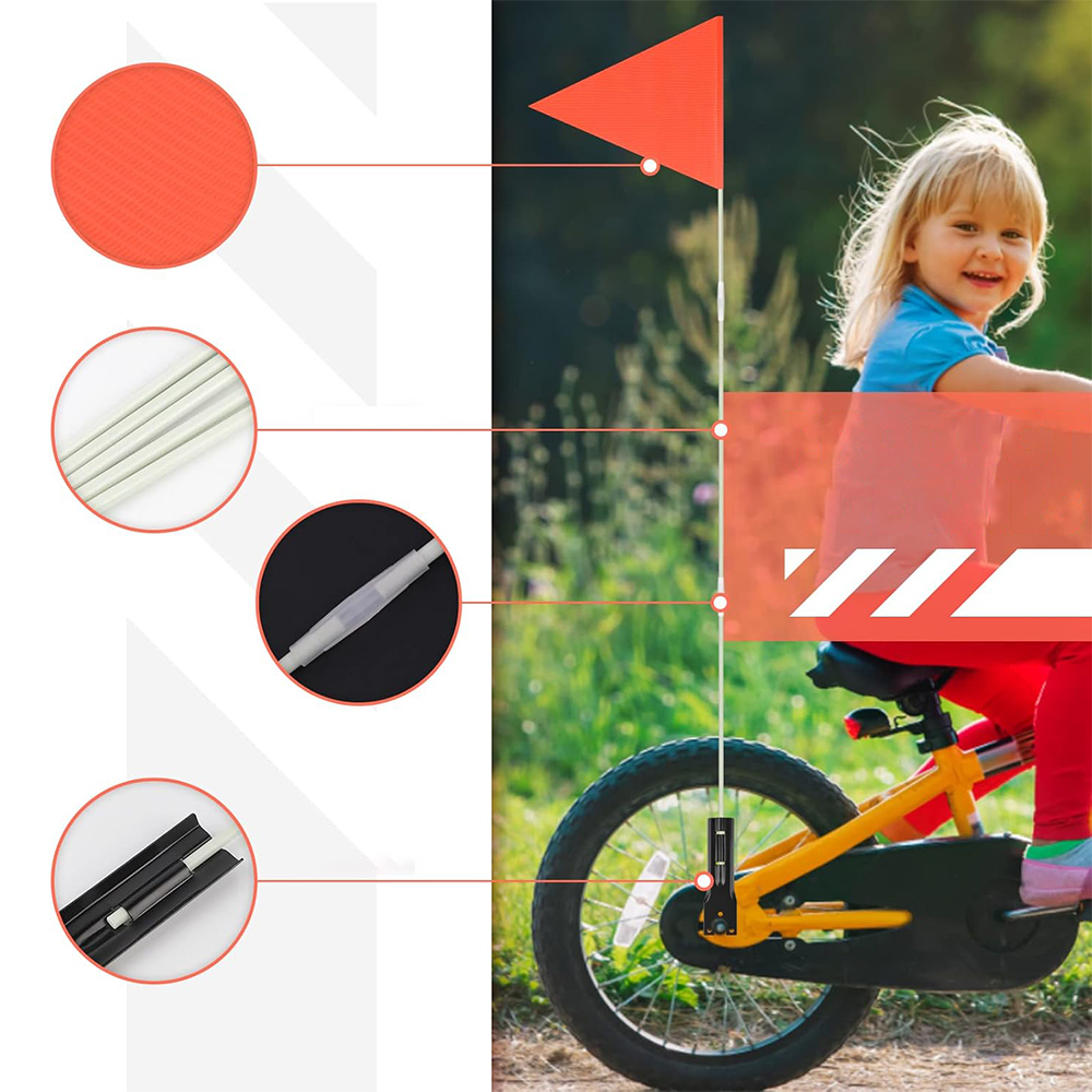 • -【Высокая видимость】: t en Продукт использует ярко-оранжевый флаг, который может быстро привлечь внимание других и оставаться видимыми даже в условиях плохого освещения. Благодаря этому велосипедисты безопаснее ночью или с плохой видимостью. Кроме того, продукт оснащен отражающими полосками, что еще больше улучшает видимость велосипедистов.