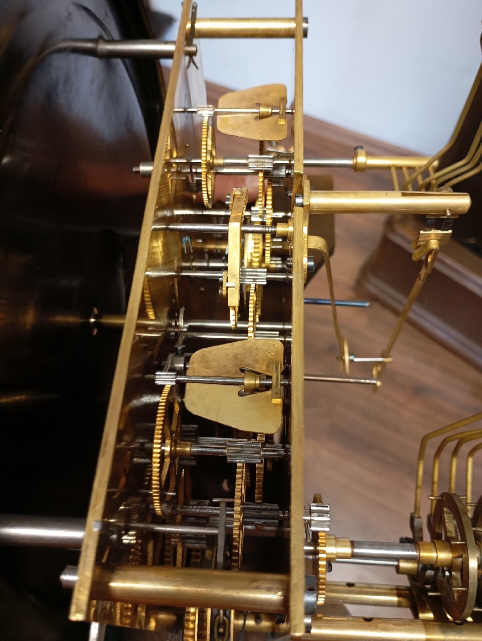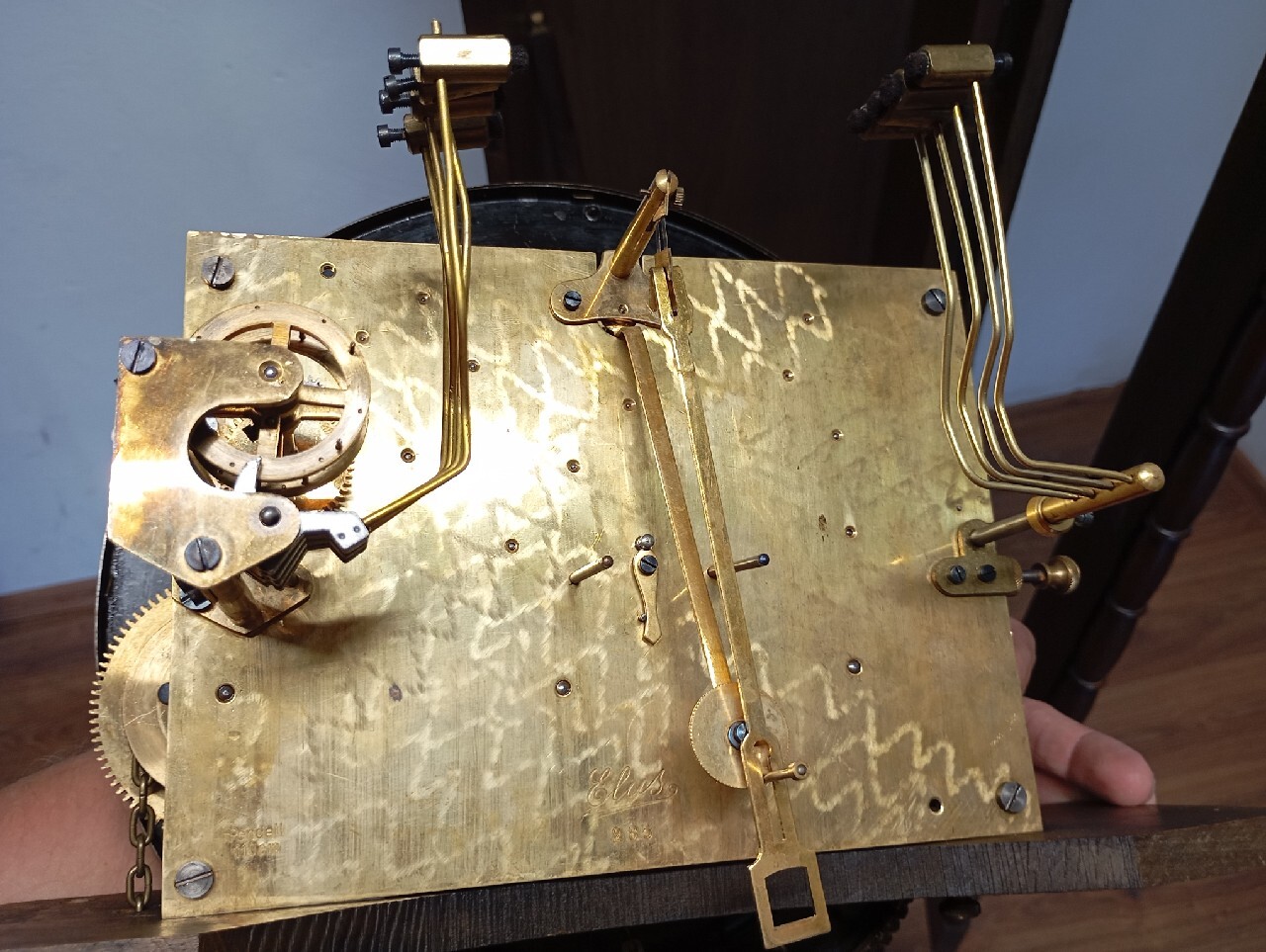 Коробка передач часов очень хороша !!! и оригинальное состояние, в темном дубовом цвете.