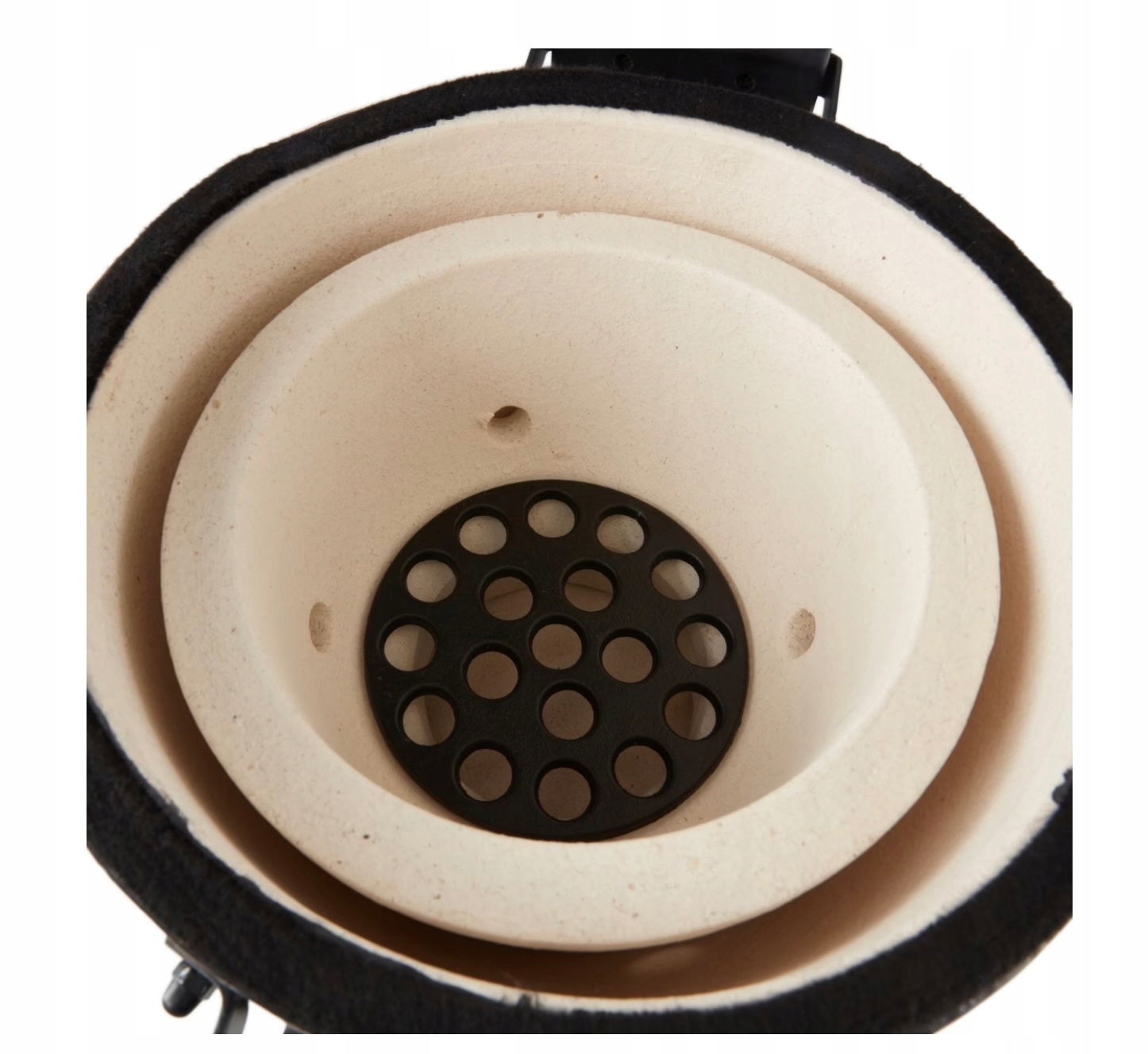 Регулируемая Входное отверстие для воздуха внизу и выходное отверстие для воздуха в крышке обеспечивают оптимальную циркуляцию воздуха. С его помощью можно регулировать температуру еды. Регулируемые пластины для гриля также полезны, поскольку позволяют разместить посуду на идеальной высоте над огнем. Стенка и чаша для костра изготовлены из керамики, поэтому на камадо не влияют высокие температуры или перепады температур.