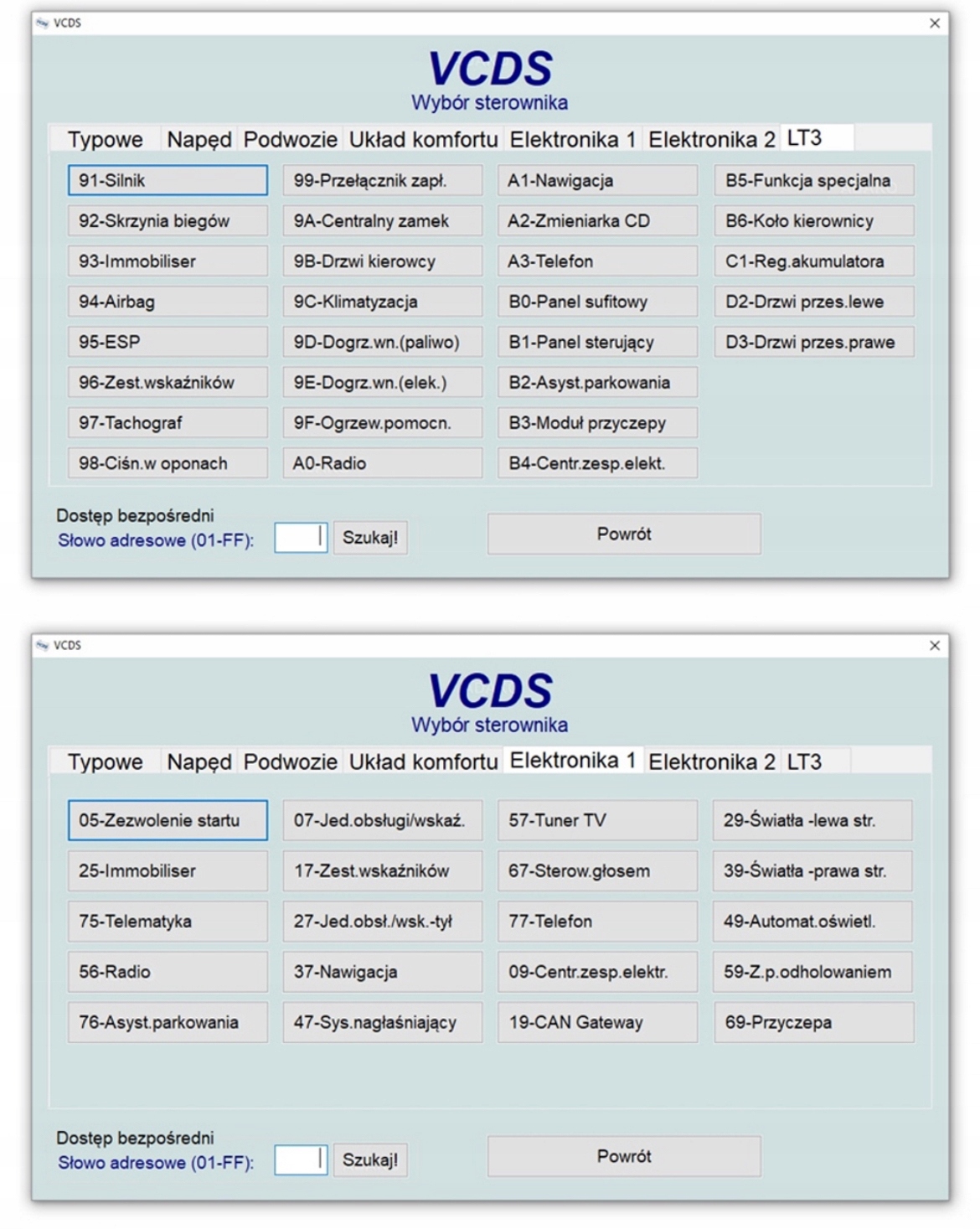 3. Доступ ко всем модулям управления, которые должны работать в зарезервированных моделях VAG