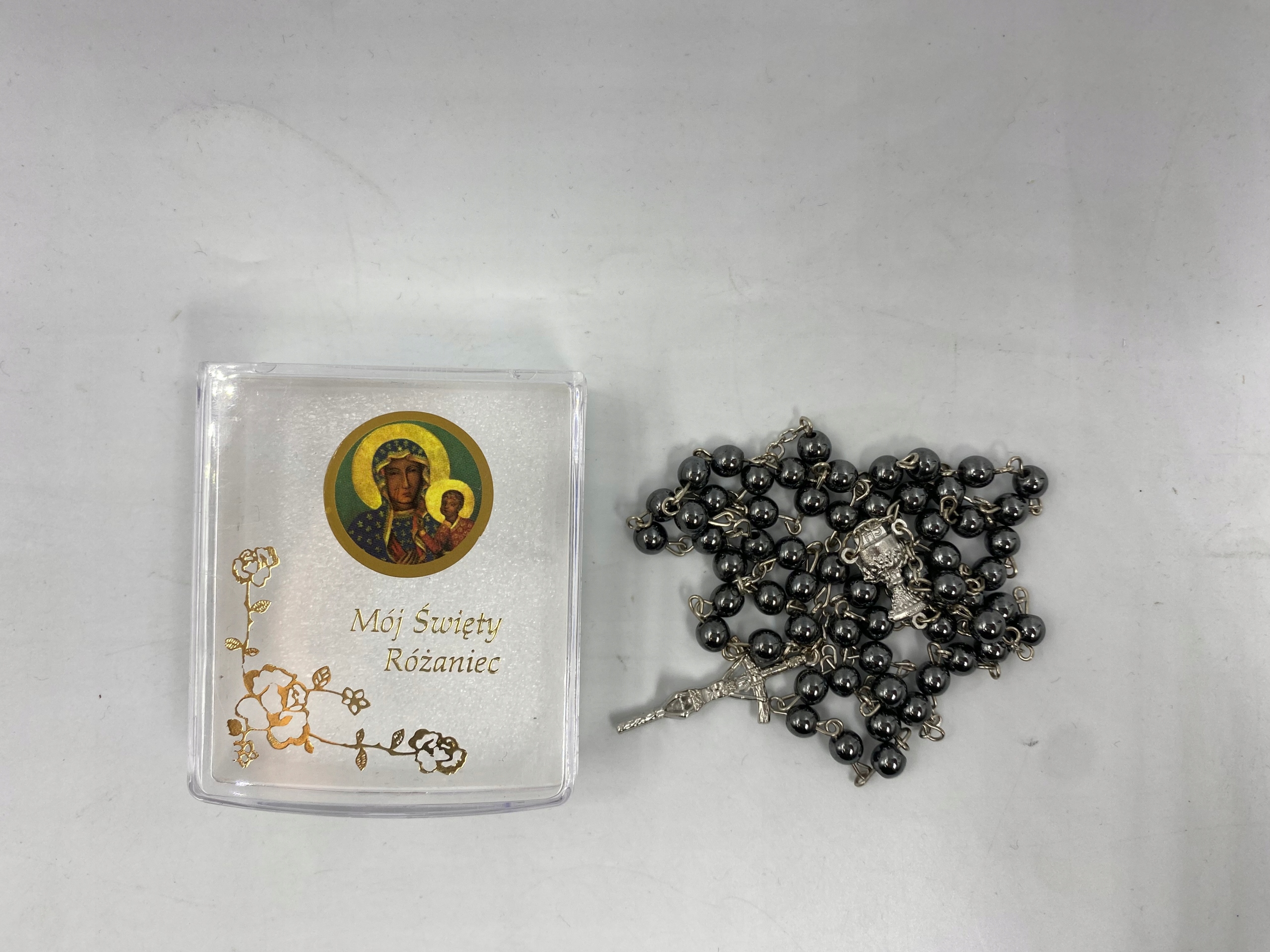 ПРИЧАСТНИЙ РОЗАРІЙ Гематит ДЛЯ ХЛОПЧИКА + КОРОБОЧКА Богоматір Ченстоховська