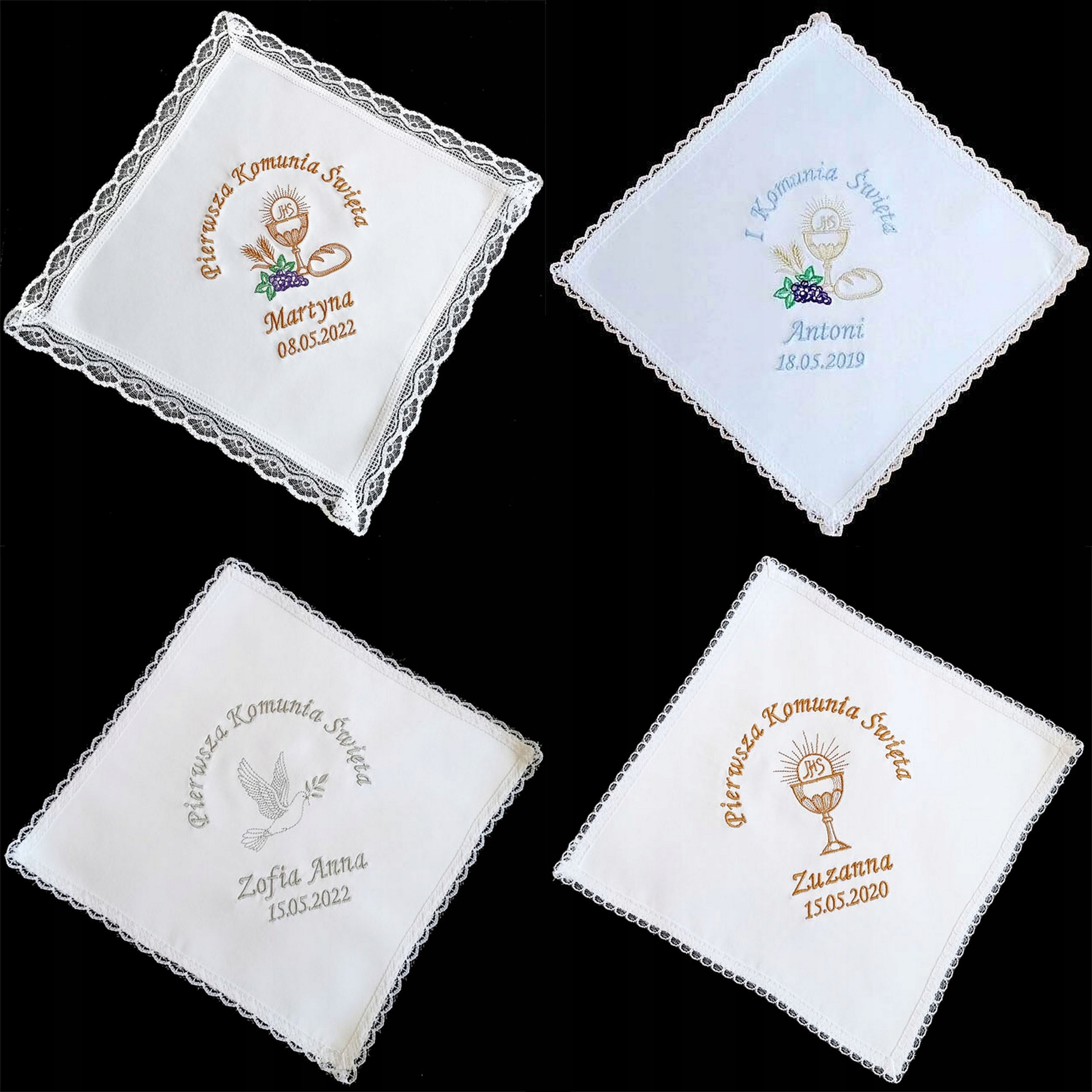 Уникальный платок с вашей индивидуальной вышивкой (имя ребенка, дата первого причастия, графика)