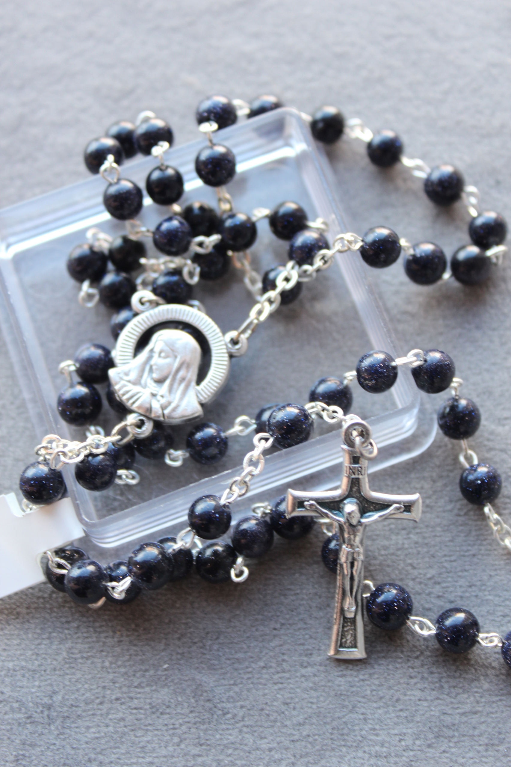 - Цвет: глубокий синий синий с глянцевыми частицами (звездные небеса) <с другой стороны, сердце Иисуса , диаметр около 1,4 см