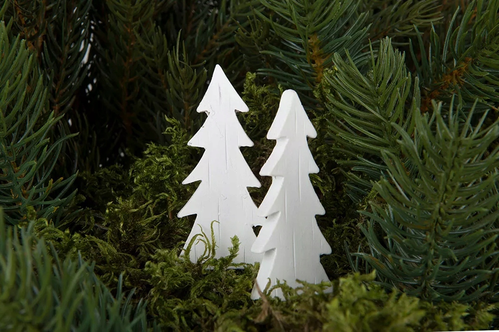ЦВЕТОЧНОЕ УКРАШЕНИЕ ЦВЕТАМИ РОЖДЕСТВЕНСКАЯ ЕЛКА, деревянное, белое, 9см