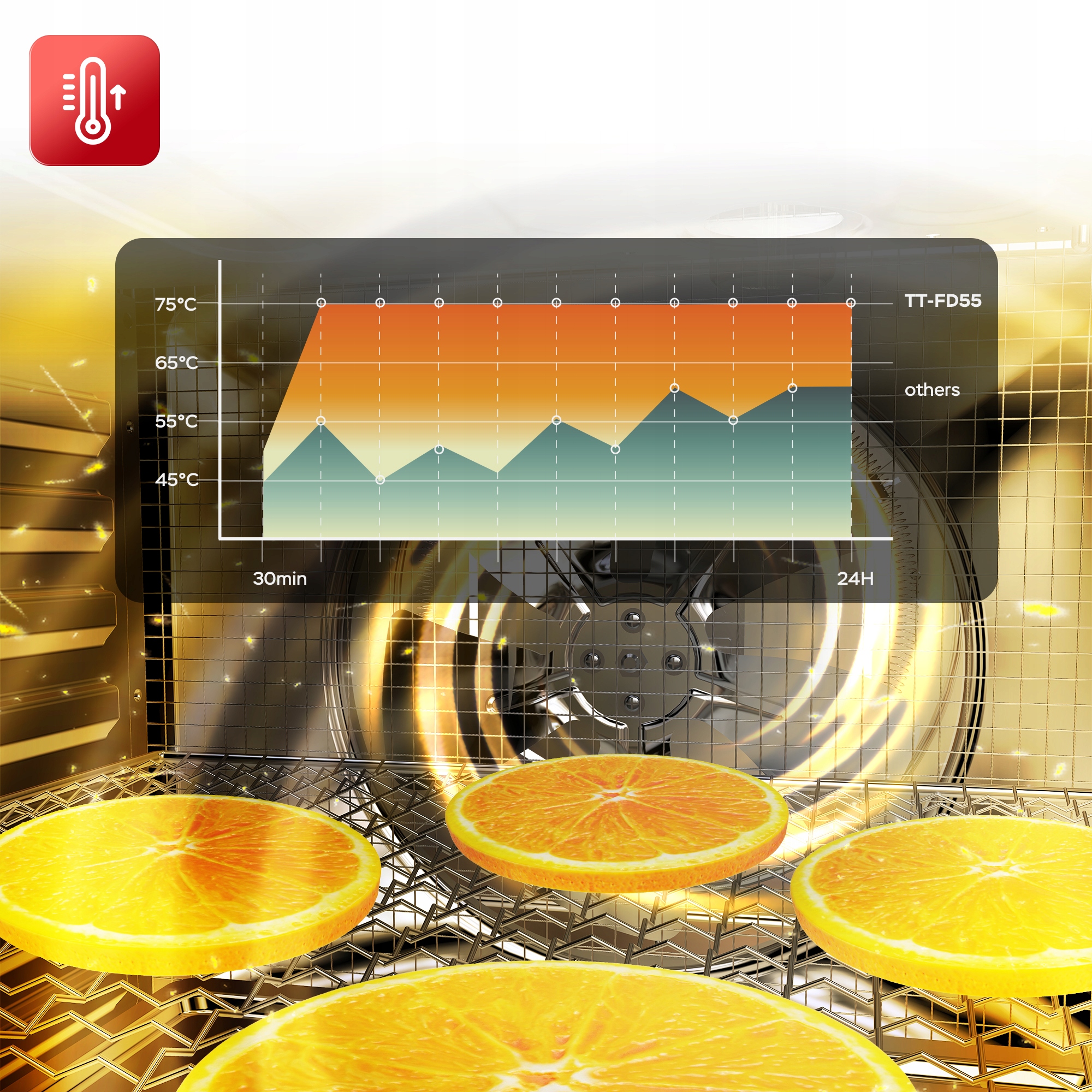 Благодаря турботронной сушилке TT-FD55 сушка становится искусством. Профессиональное оборудование Высшее качество обеспечивает несравненную эффективность , что делает ваши продукты идеально высушенными , , сохраняя полным вкуса и питания.