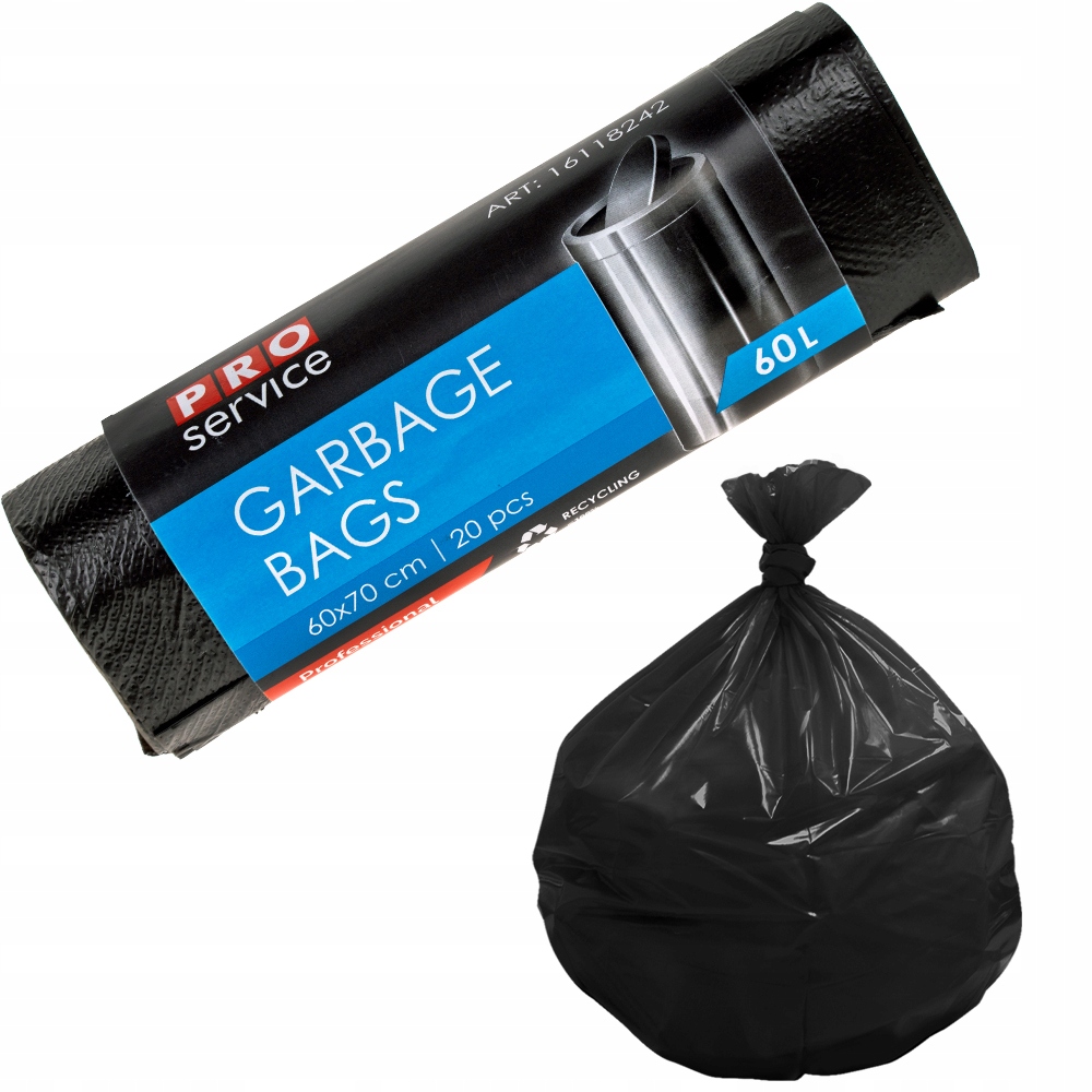 Пакеты для мусора PRO Service Strong черные универсальные LDPE 60л 20 шт.