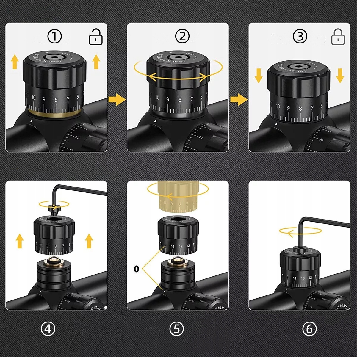 - ⑤ Выровняйте знак «0» на крышке башни с маркером клика на Lunette