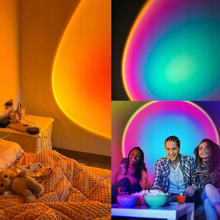 ПРОЕКЦІЙНА НІЧНА ЛАМПА ЗАХОДУ СОНЦЯ RGB 16 КОЛЬОРІВ ДИСТАНЦІЙНОГО КЕРУВАННЯ + ДОДАТОК