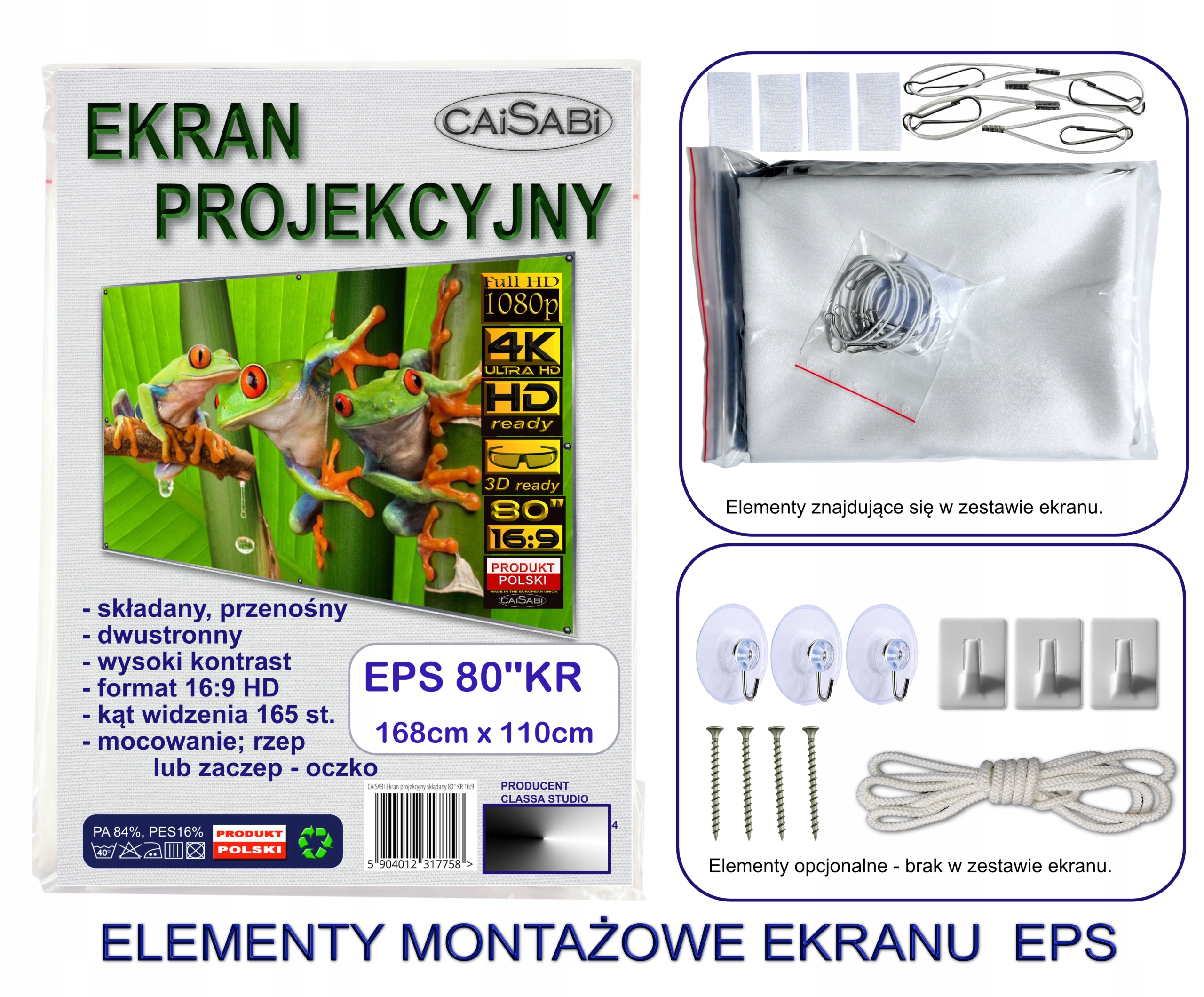 Мы приглашаем вас купить экран проекции EPS 80 KR 16: 9 HD. экран производится в Польше из высококачественной, плотной акрило -полиэфирной ткани. Используемое переплетение устраняет отражения и обеспечивает высокую контрастность, яркости и угол обзора изображения. Мы предлагаем шесть размеров; 55 дюймов, 68 дюймов, 80 дюймов, 83 дюйма, 112 дюймов и 137 дюймов. На этом аукционе экран имеет диагональ 80 "(размер изображения 168 × 110 см).