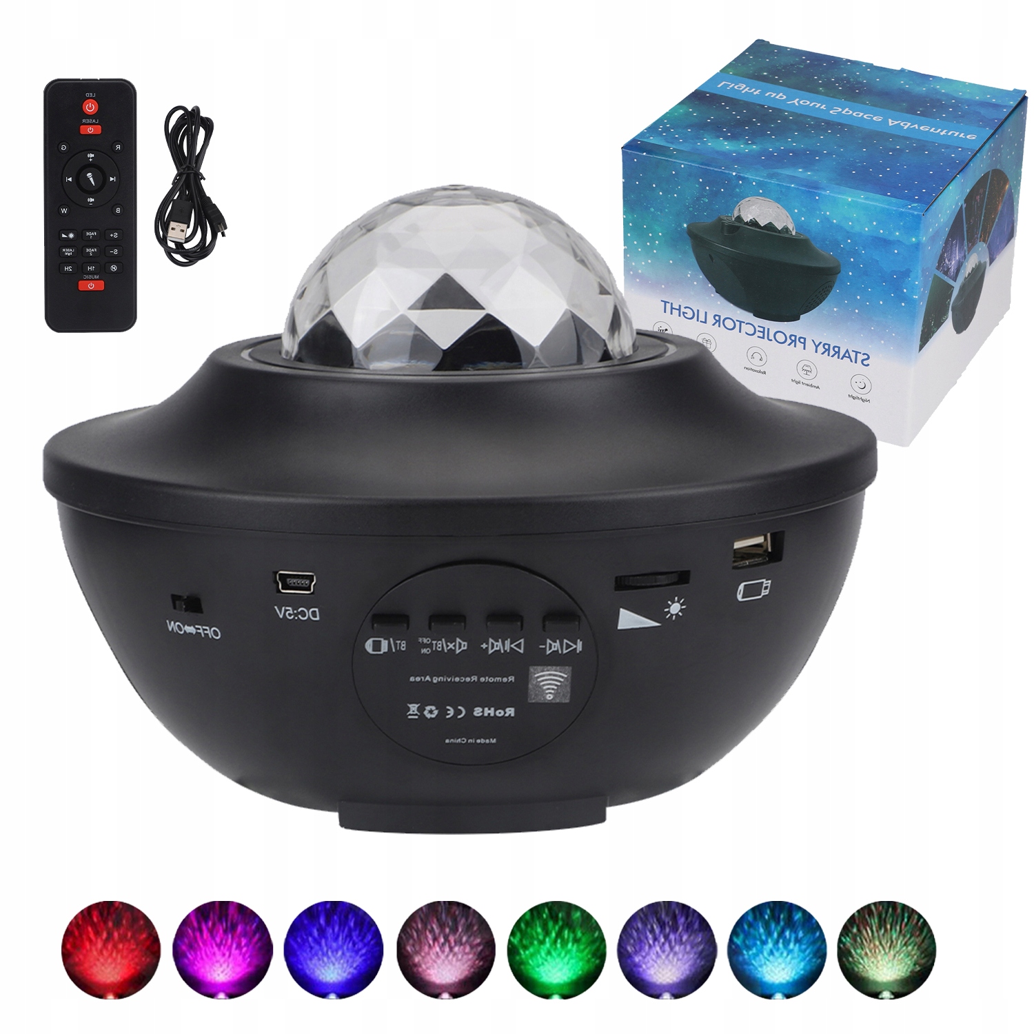 Благодаря звездному проектору, вы можете полюбоваться увлекательными проекциями полярного, звездного неба и луны, не выходя из дома. 10 динамичных цветов и мерцающих звезд создают уникальную атмосферу, которая вводит гармонию и магию для любого пространства. Идеально подходит для спальни, гостиной или детской комнаты. Встроенный динамик Bluetooth позволяет воспроизводить ваши любимые песни непосредственно с телефона, а USB -порт позволяет подключать внешнюю среду памяти. Огни реагируют на звук, адаптируя проекцию к ритму музыки, что делает каждый вечер уникальным. Пульт дистанционного управления с пультом дистанционного управления, благодаря которого вы можете: