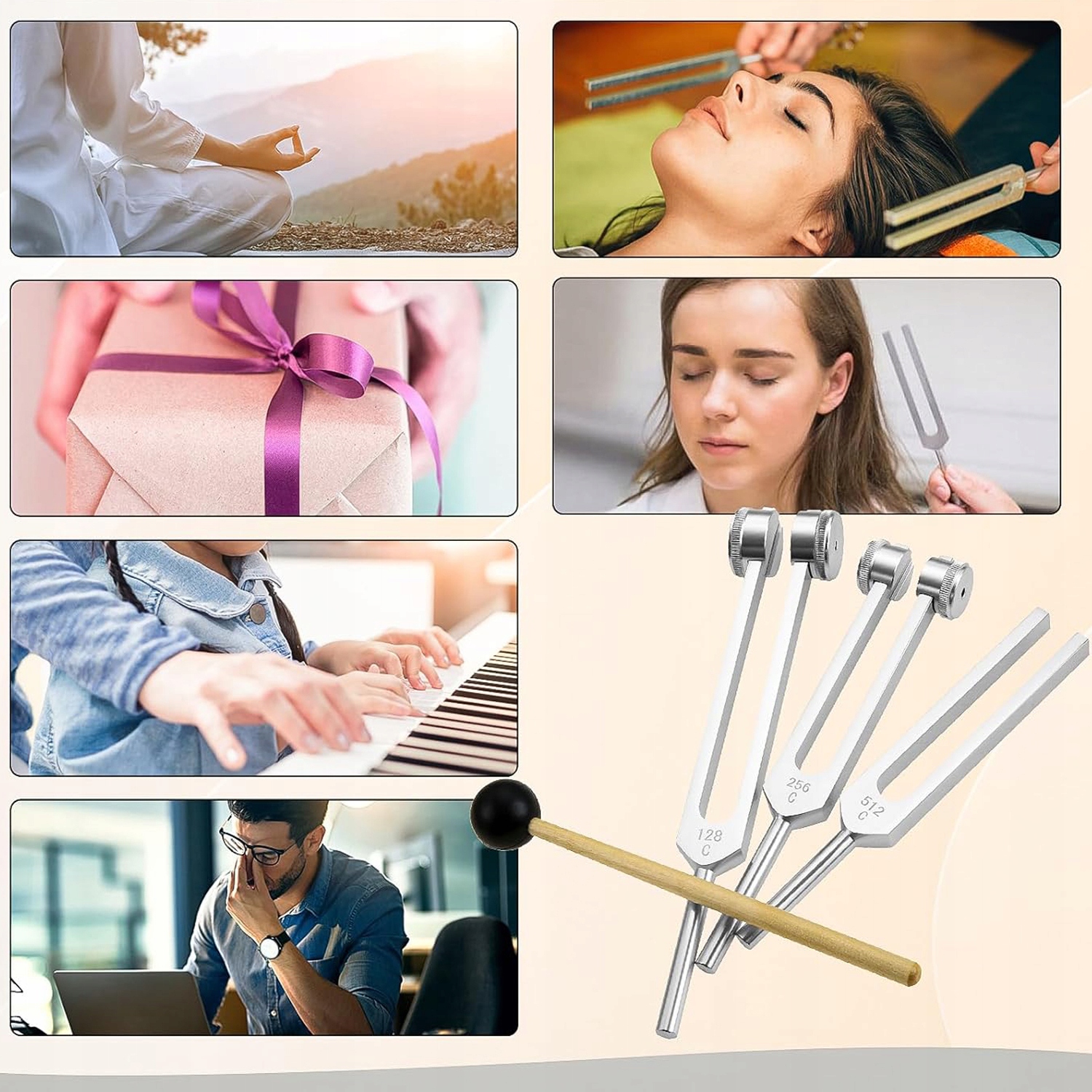 🫨 🫨 серия. Диапазон совместимости: 128 Гц, 256 Гц и 512 Гц, регулируемые наборы вилок для терапии. Идеально подходит для аудиологии пациентов, терапии, образования детей, снятия стресса и боли, очищения тела и разума.