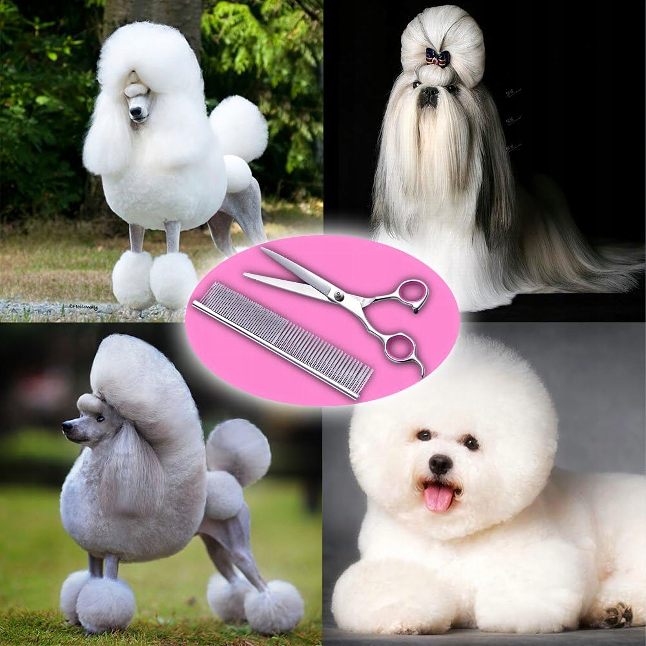 🐾 Полный комплект - 3 Типы ножниц (простое, изогнутое, затенение) + расческа + элегантный случай. Общество.