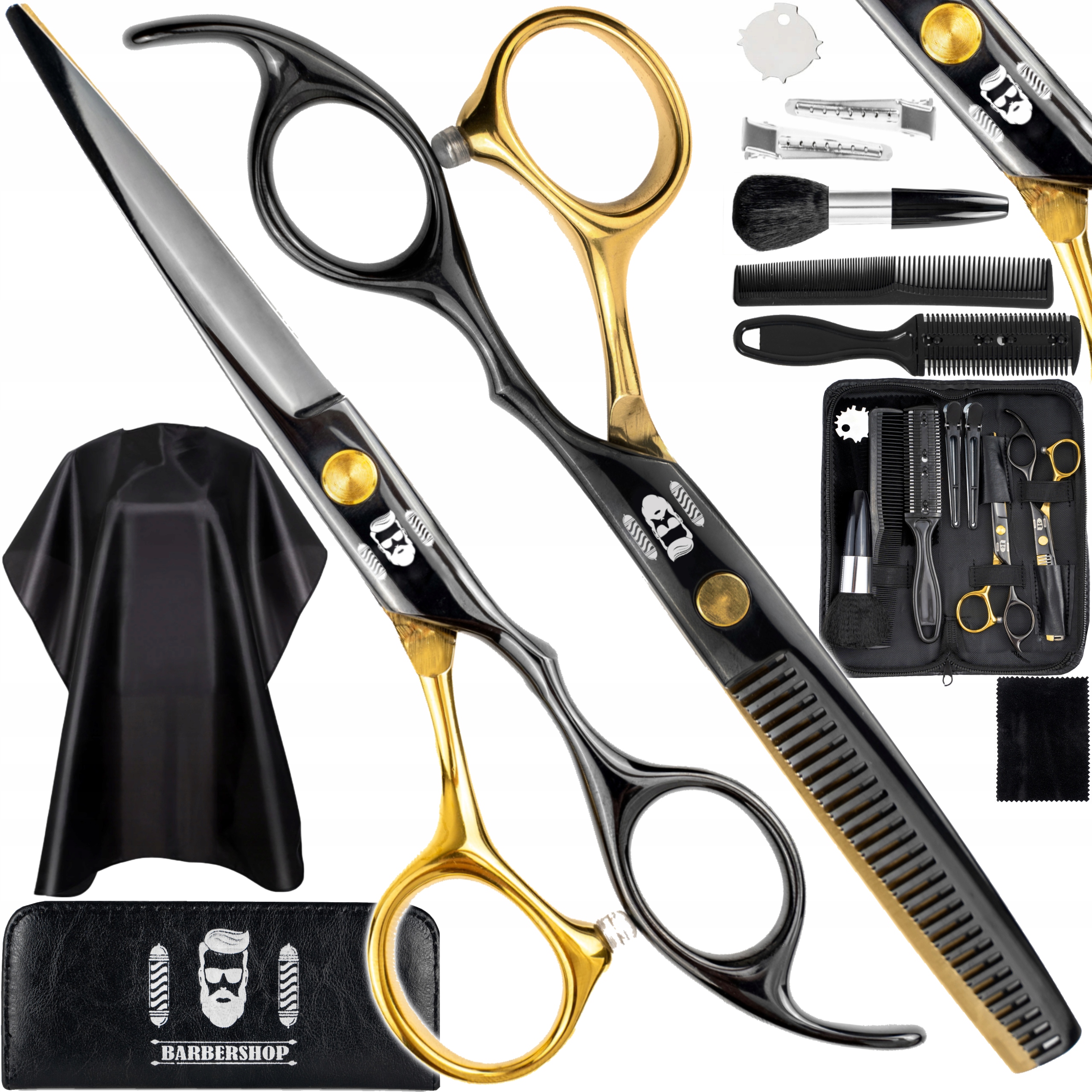 - БОЛЬШОЙ НАБОР 11 элементов - ножницы, филировочные утюжки, накидка, футляр, расческа, щетка, ткань, 2 парикмахерских инструмента клипса,
