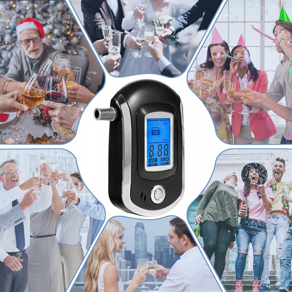 💡🚗【Звуковое предупреждение】Когда результат концентрации алкоголя в крови превысит определенный уровень, алкотестер издаст звуковой сигнал, чтобы вы могли принять более правильное решение. Если показание превышает 0,050% BAC, 0,500% BAC или 0,250 мг/л (BrAC), тестер подаст сигнал тревоги.
