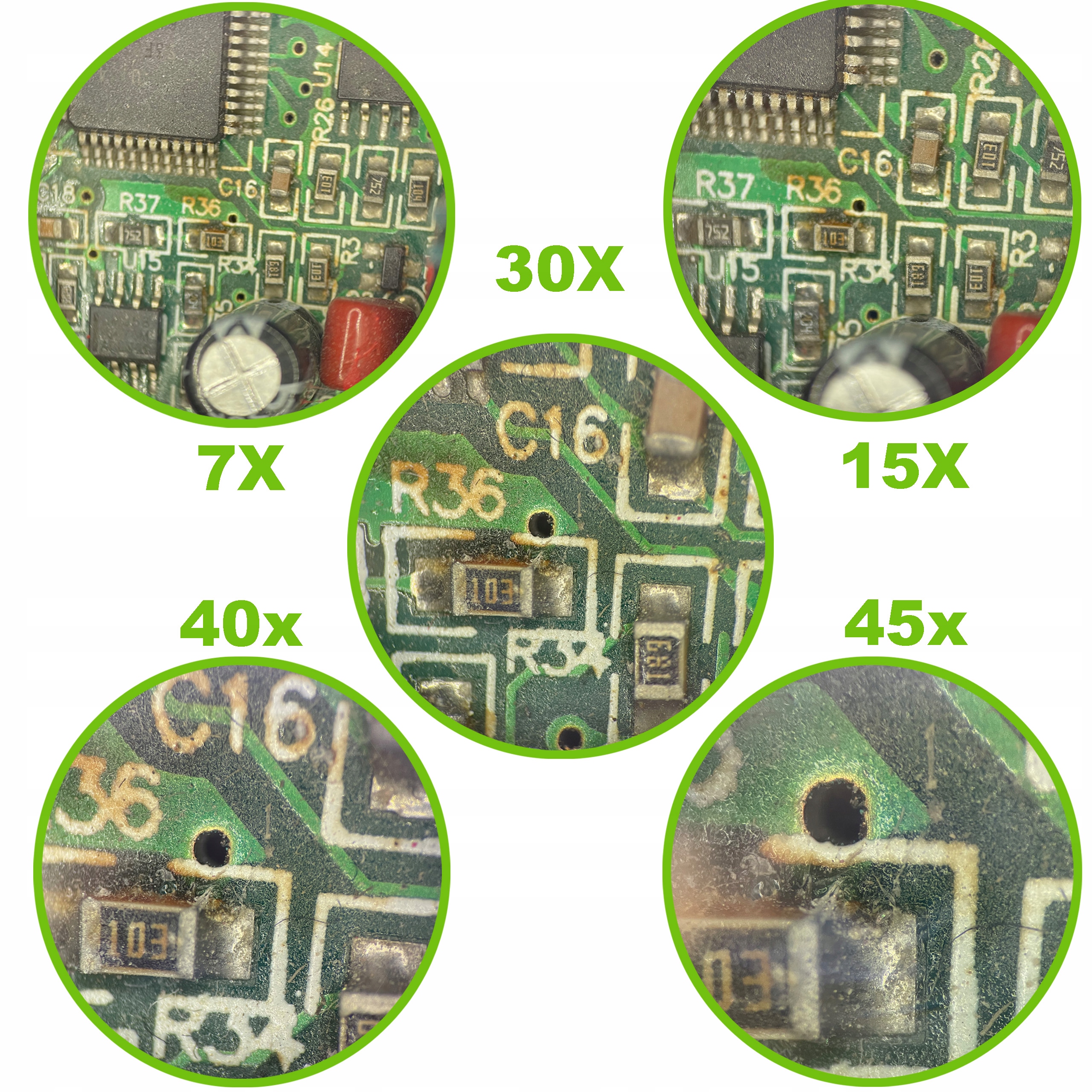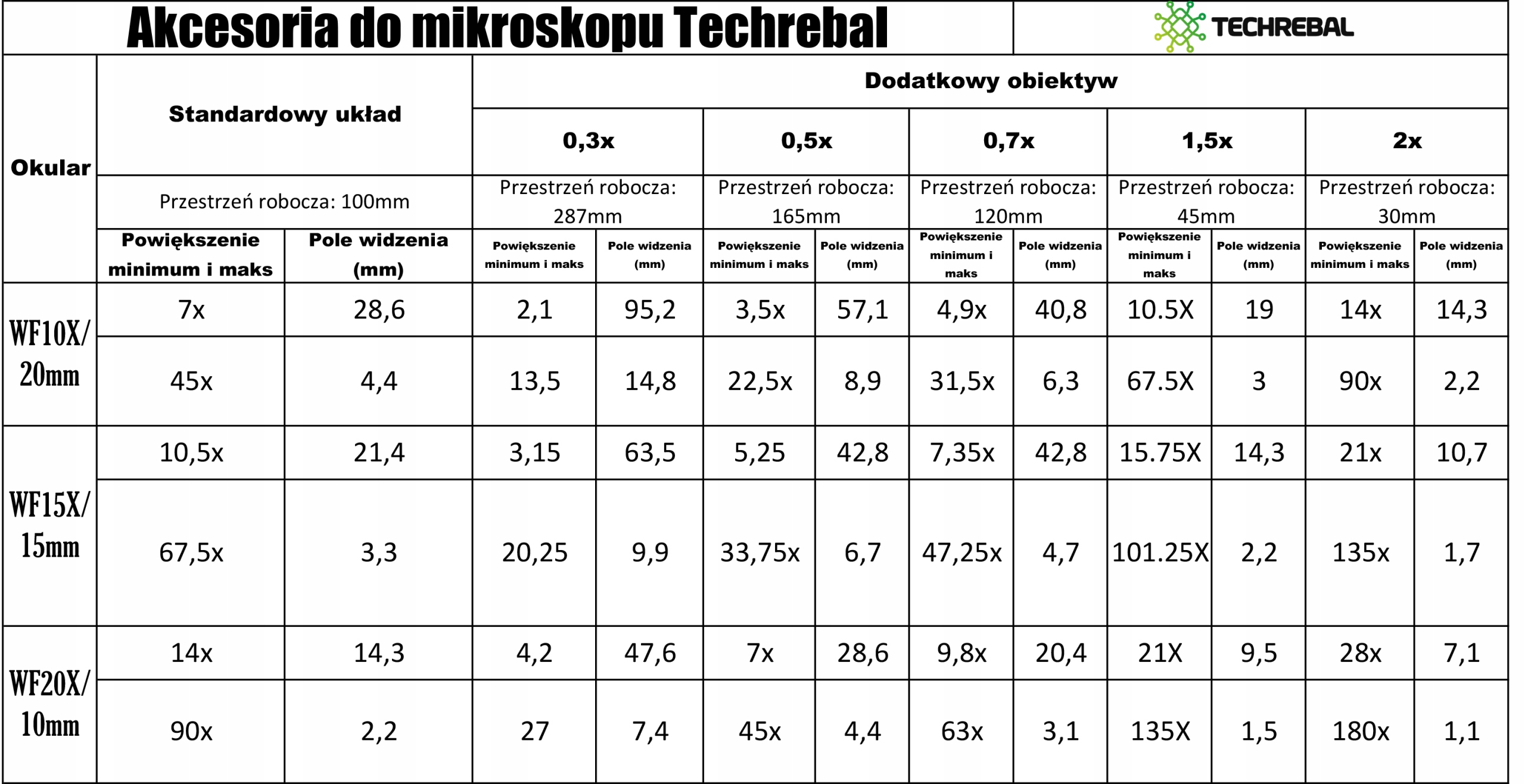❌ Ниже вы найдете фотографию, показывающую отдельные увеличения, которые мы можем наблюдать в очки микроскопа в реальности. В стандартной конфигурации расстояние между объектом и головкой микроскопа составляет 10 см.