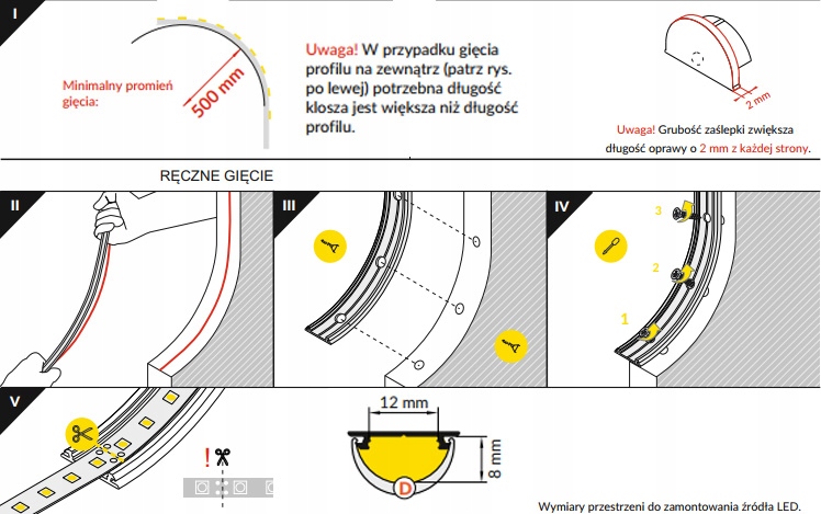 Профиль Alu для приложений с согнутыми светодиодными приложениями + 2 -метровый оттенок