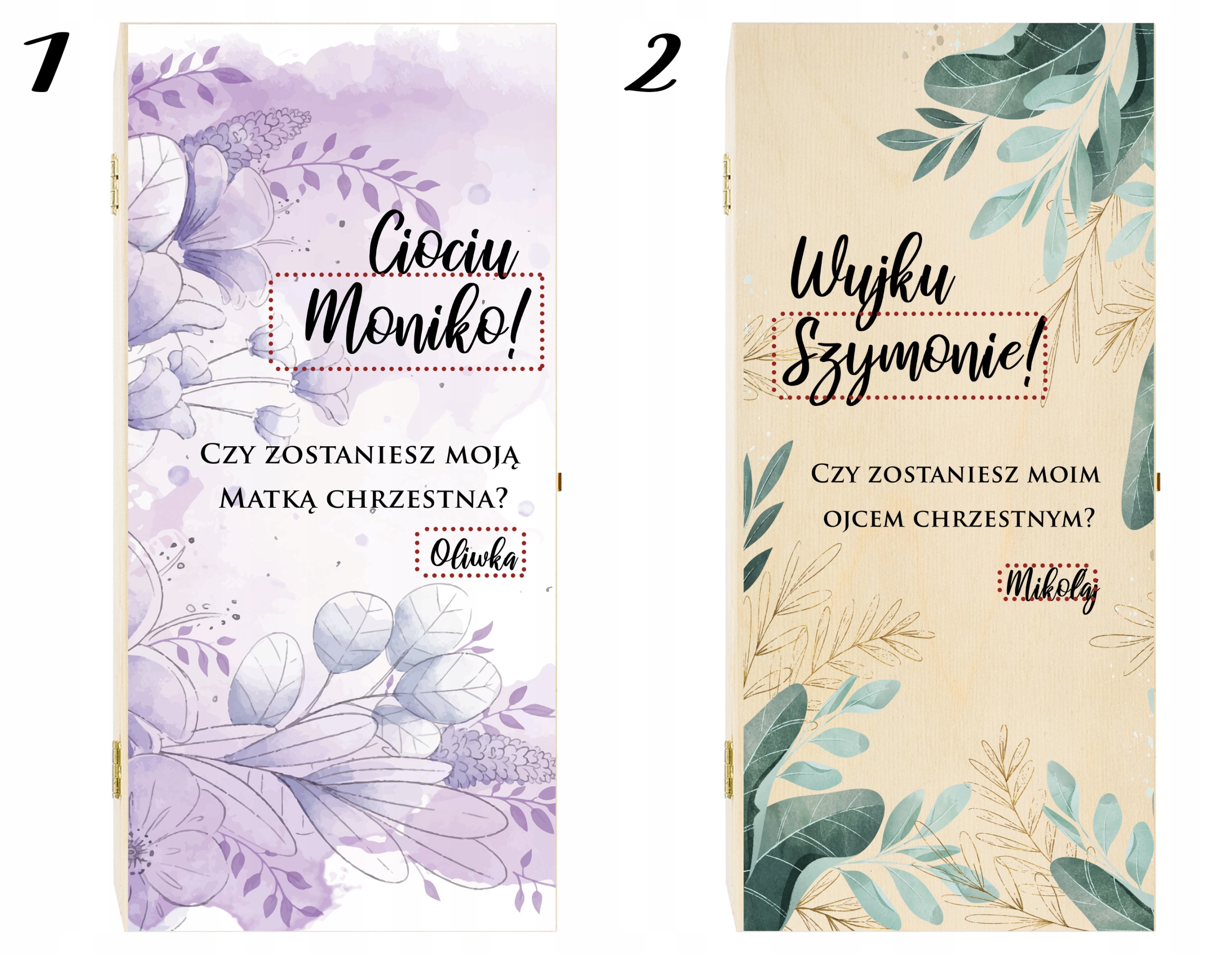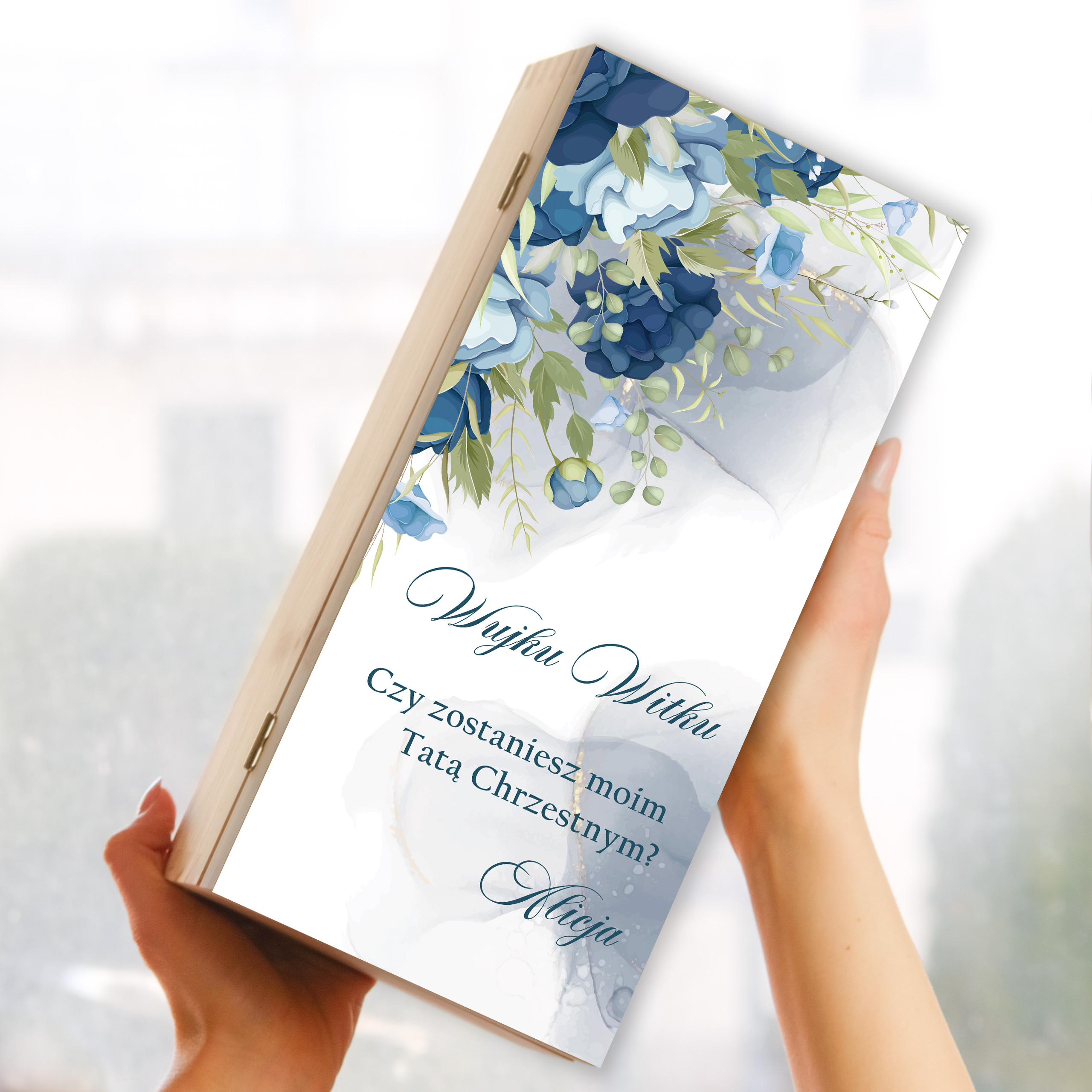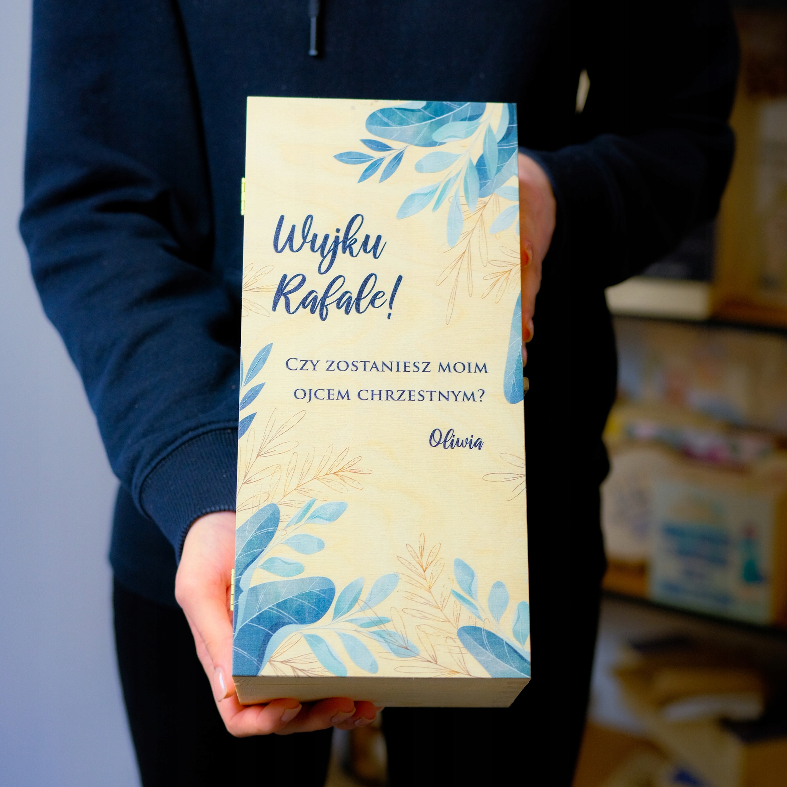 Коробка для виски — необычная идея, когда мы хотим задать очень важный вопрос. Печать на коробке – это не простой запрос. Такой подарок подчеркивает важность события и ту роль, которую крестные родители сыграют для нашего ребенка.