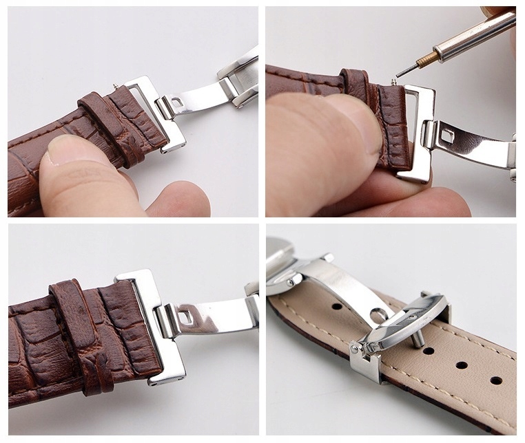 При примерке пряжки очень важно точно измерить ширину ремешка в месте застежки. Пожалуйста, не полагайтесь на размер, указанный на конце ремешка, поскольку для большинства ремешков этот размер относится к ширине крепления к футляру, а дальняя часть ремешка, где крепится пряжка, может быть уже.