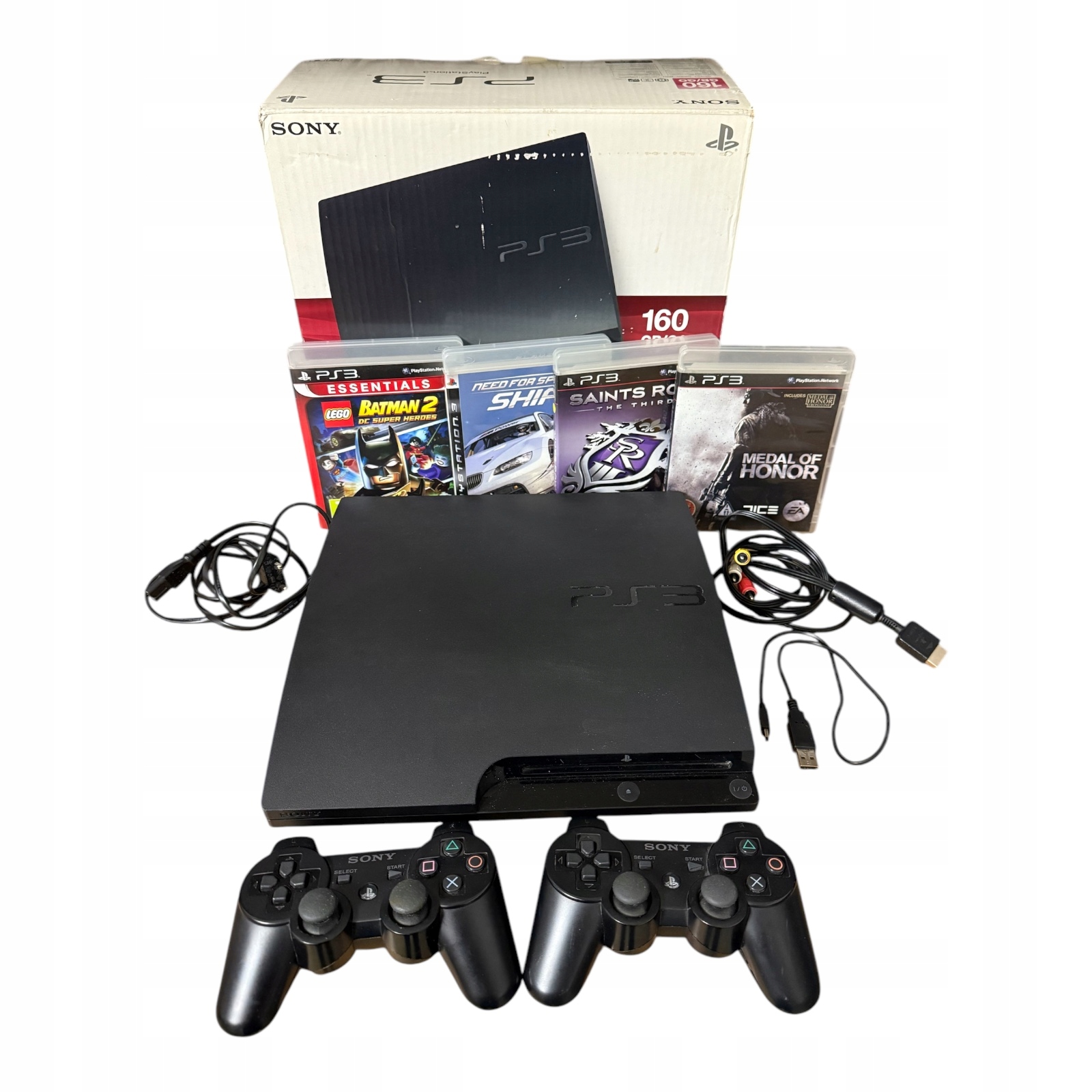 PS3 Slim PS3 Консоль, 2 прокладки, 4 игры очень хорошего состояния