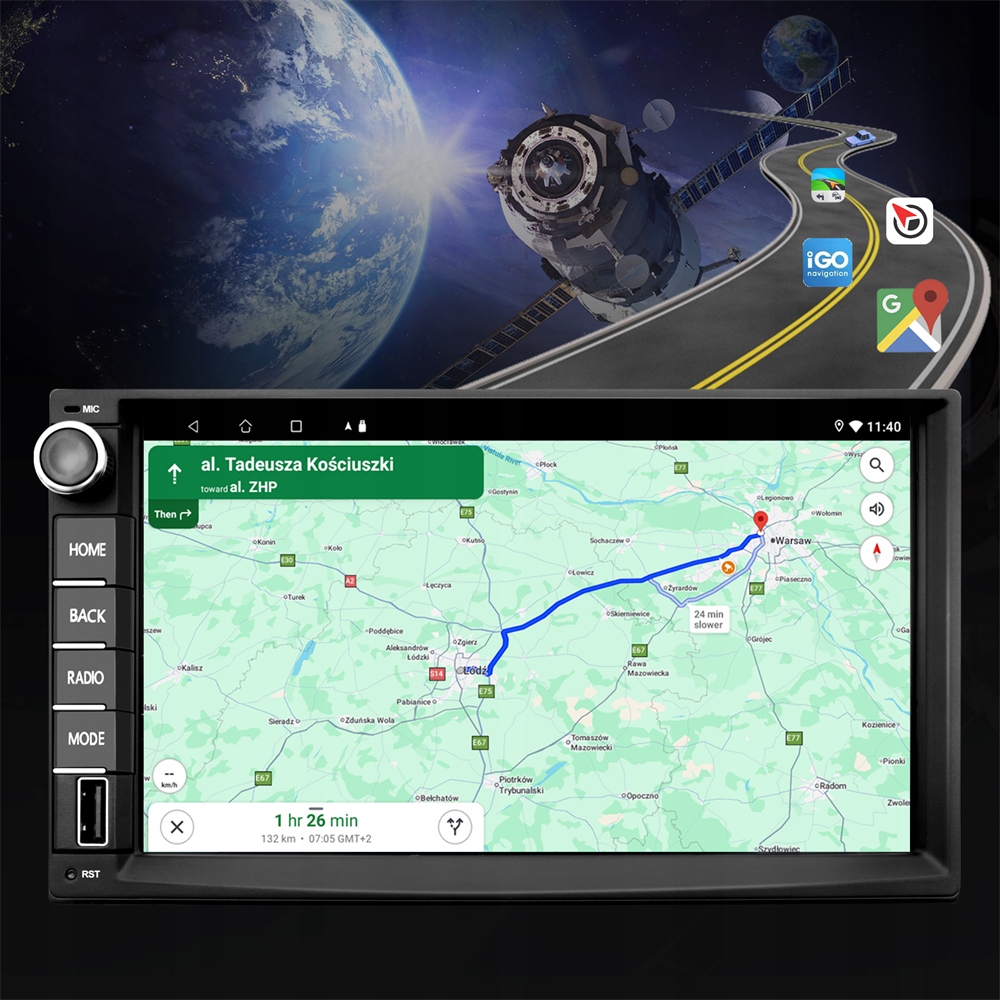 модуль GPS автоматически проследит ваше местоположение b>, что позволит вам узнать о вашем местоположении и маршруте в любое время. благодаря установленным заводским картам Google вы можете найти пункт назначения, получить информацию о трафике в режиме реального времени и рассчитать лучший маршрут. Независимо от того, ехали ли вы по городу или на сельских дорогах, позиционирование GPS гарантирует, что вы не потеряетесь. Это незаменимый инструмент для вашего безопасного вождения и плавного путешествия. Также можно загрузить другие навигационные приложения, совместимые с Android, такие как Yanosik, Sygic, Waze и т. Д.