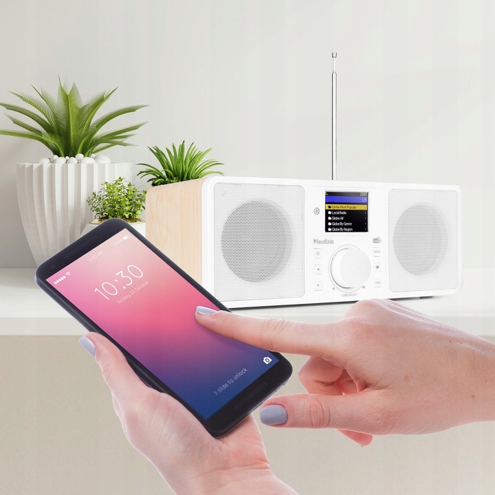 Audizio Rome — это многофункциональное устройство для музыкальных развлечений. Выглядит как ретро-магнитола, но «под капотом» в ней нет ничего ретро, даже наоборот. Например, это DAB-радио с Bluetooth, а также интернет-радио/WiFi-радио, что делает его очень современным. Rome — относительно небольшое радио, которое можно легко разместить на кухне или в офисе. Поскольку он оснащен двумя будильниками, его также можно использовать в качестве радиочасов. Радио оснащено Wi-Fi, Bluetooth и DAB+, что позволяет использовать его разными способами.