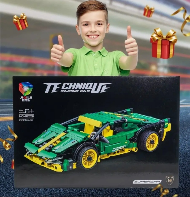 Пластиковый конструкция для детей - это спортивный автомобиль, состоящий из 639 элементов. Этот строительный набор станет отличным подарком для детей, которые интересуются автомобилями и мотоциклами.