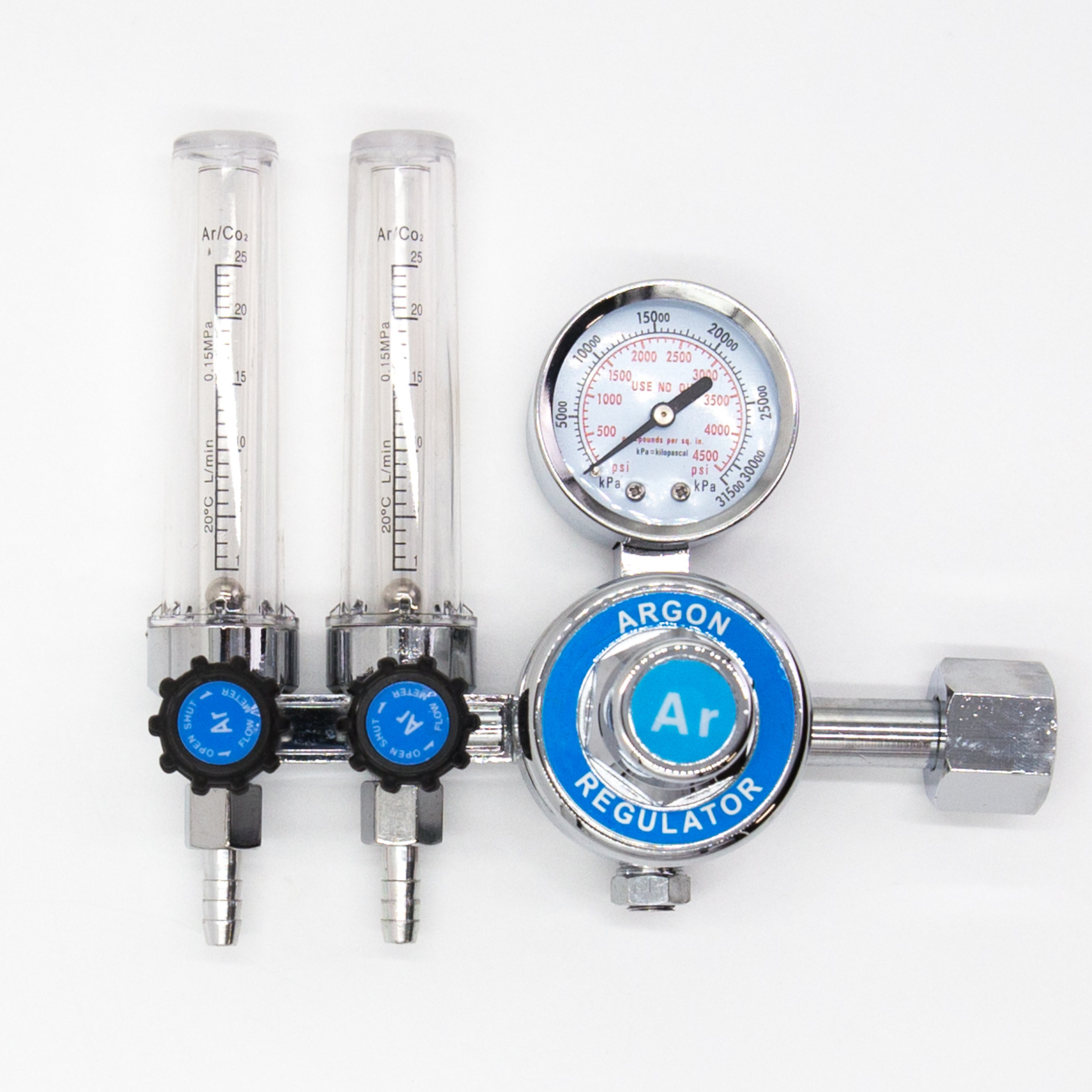 Точный цилиндрический редуктор с двумя ротаметрами, запорным клапаном, предназначенным для АРГОНА, ДИОКСИДА УГЛЕРОДА и смесей этих газов Ar/CO2.