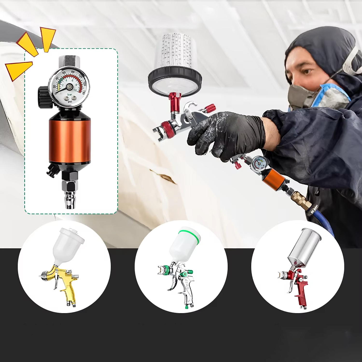 - Отключает частицы воды и нефти от воздуха, подаваемого в пистолет с краской