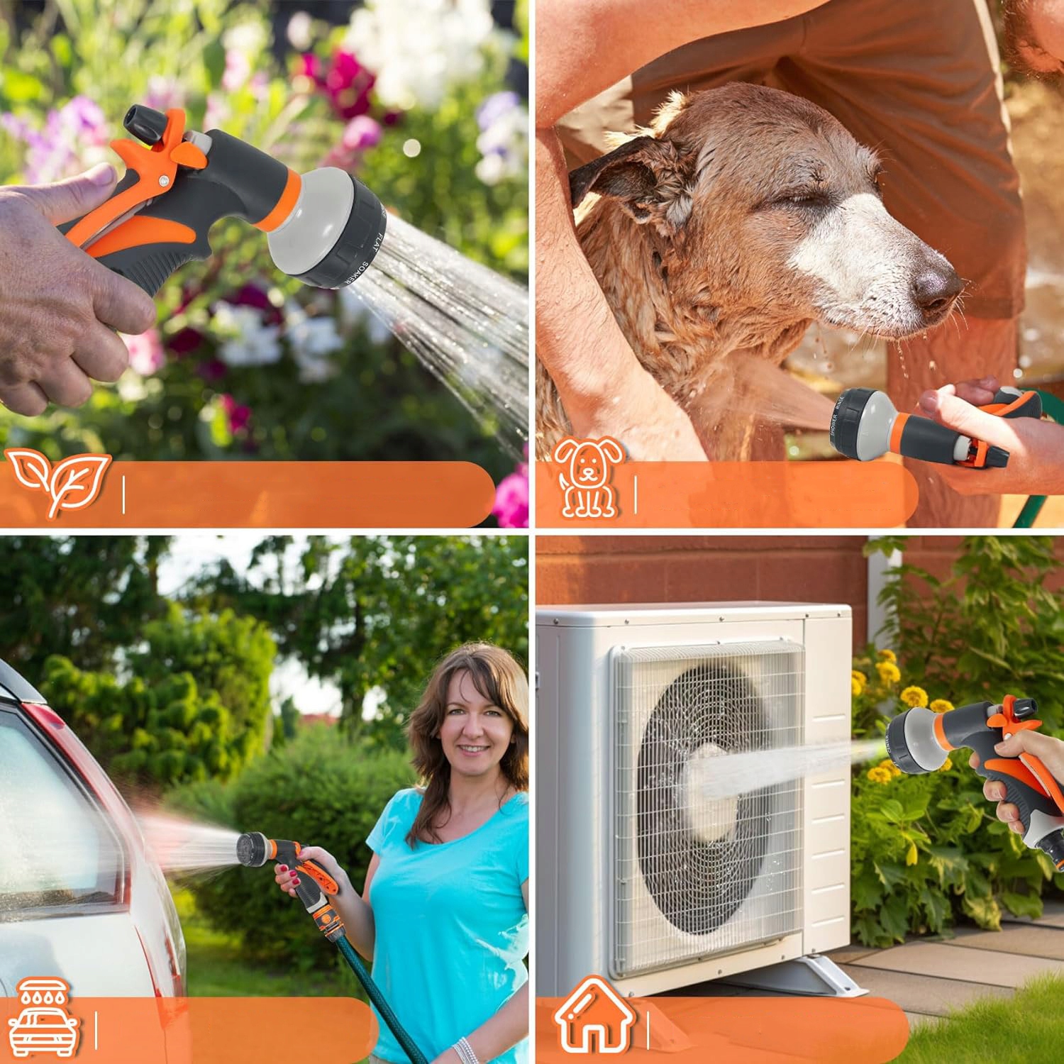 Пистолет садового спринклера удобен для удержания, а задний триггер облегчает эксплуатацию. 8 Настройки ирригации (туман, конус, душ, вертикальный, полностью открытый, вентилятор, поток, плоский). Садовый спринклерной пистолет отвечает всем потребностям, связанным с поливкой, уборкой и садоводством для различных целей.