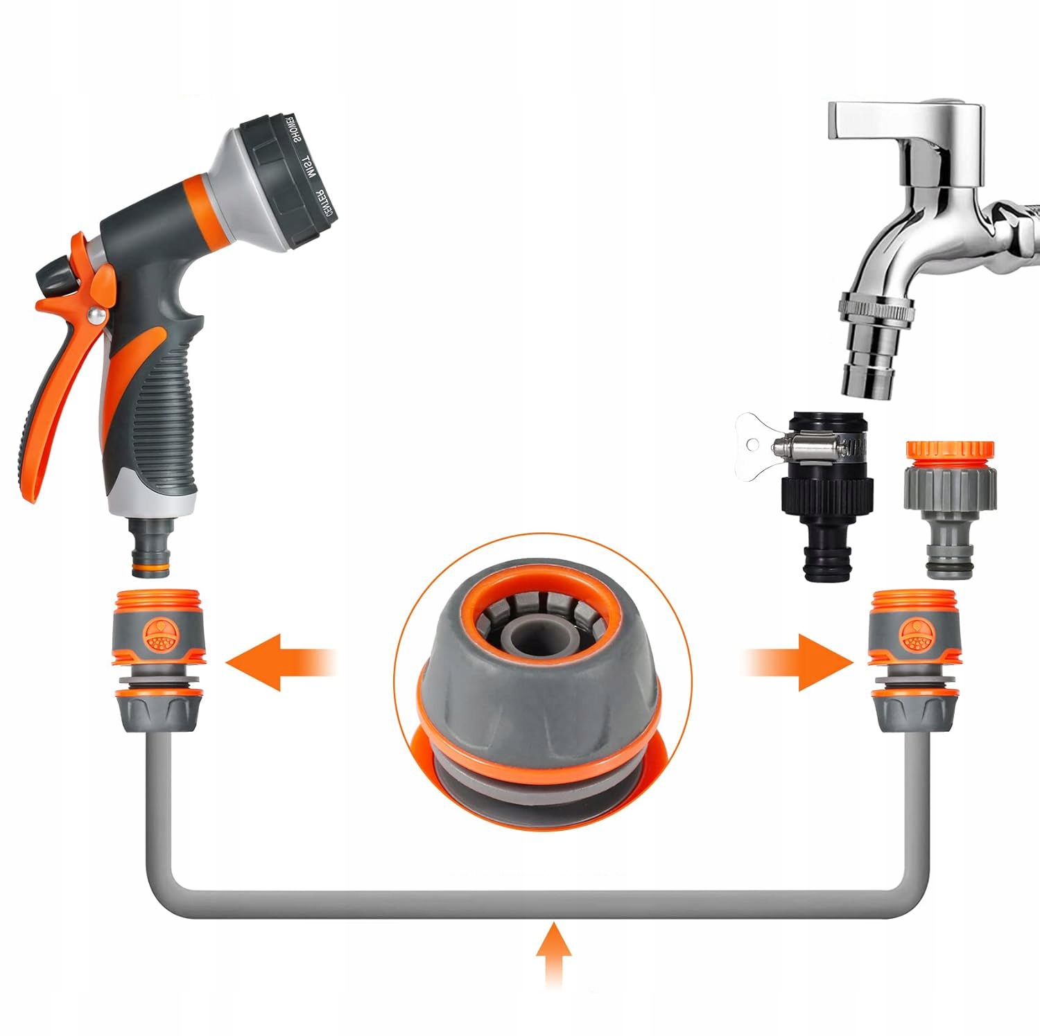 Спринклерный пистолет оснащен 2 Порты и 2 разъема. Набор также включает в себя вложения Все традиционные садовые шланги. Резиновые диски обеспечивают прочные и водонепроницаемое уплотнение, чтобы вода не текла 2 разъема, сэкономив до 90% воды.