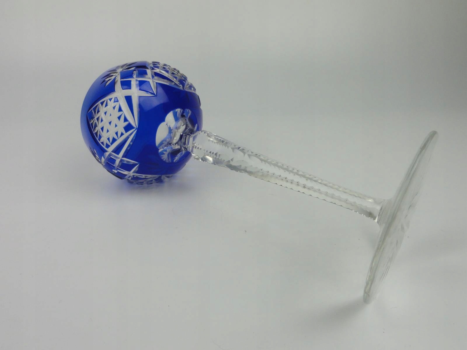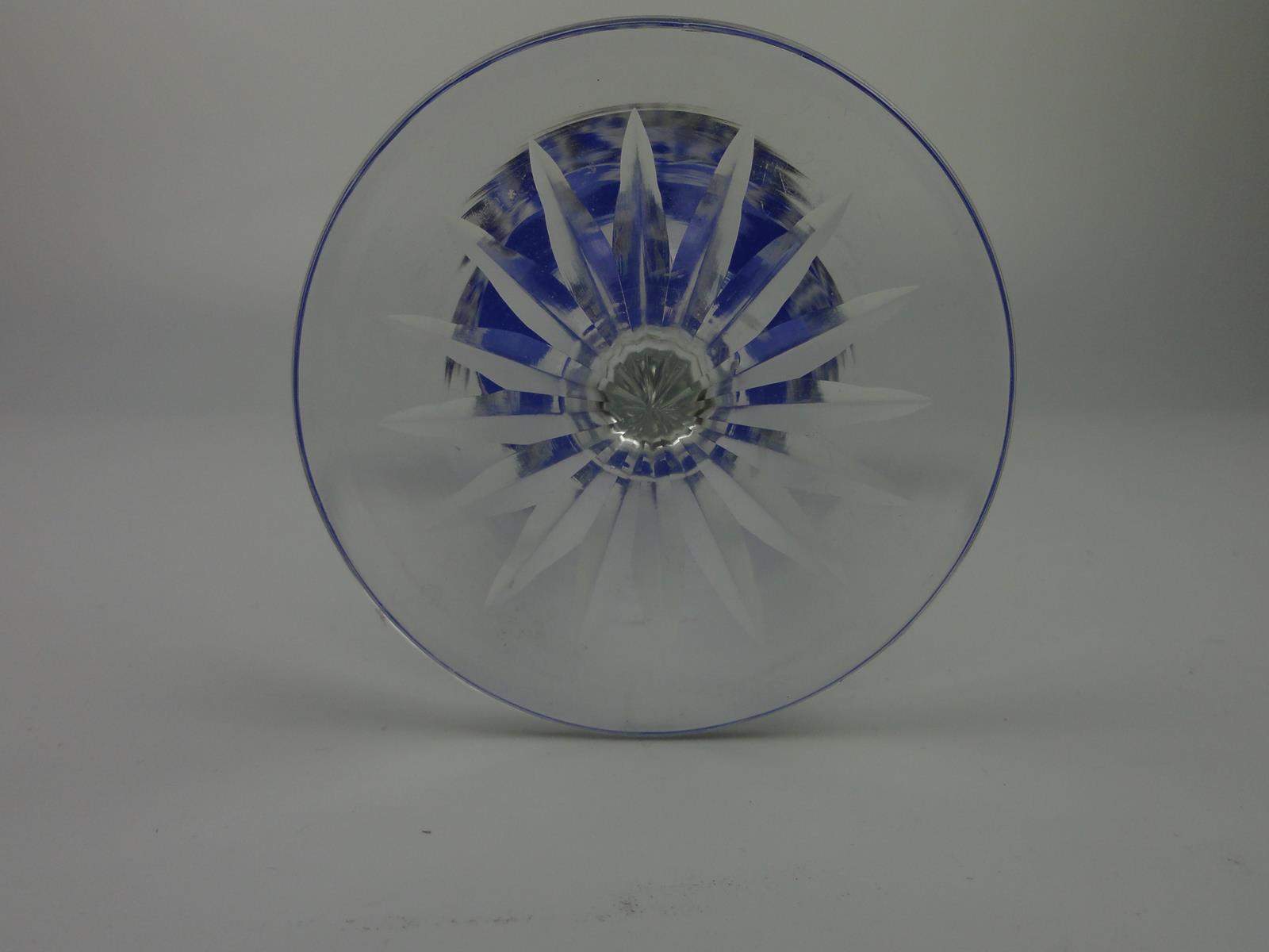 *бокал из свинцового стекла, выдувного в форме, шлифованного и полированного, кобальтово-синее покрытие, столбчатое древко, рифленое на края, ножка с розеткой,