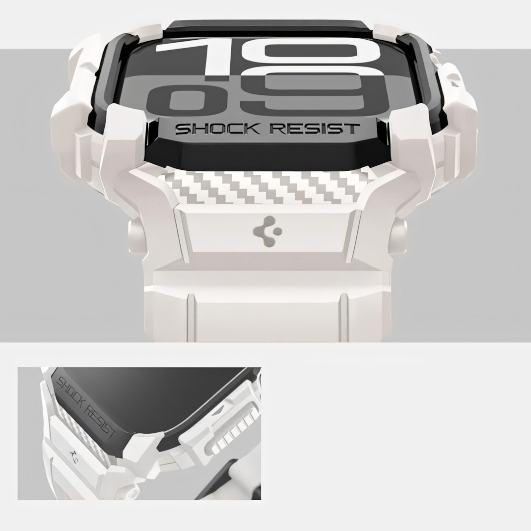 Чехол с ремешком от Spigen из серии Rugged Armor Pro, предназначен для всех, кто ожидает надежной защиты своих умных часов.